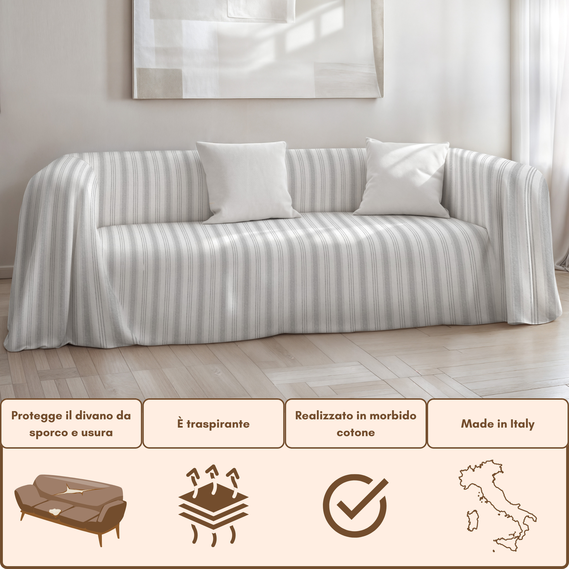 Oltre che come copriletto e copridivano potresti utilizzare il nostro telo copritutto come una morbida coperta estiva matrimoniale oppure una splendida tovaglia in cotone