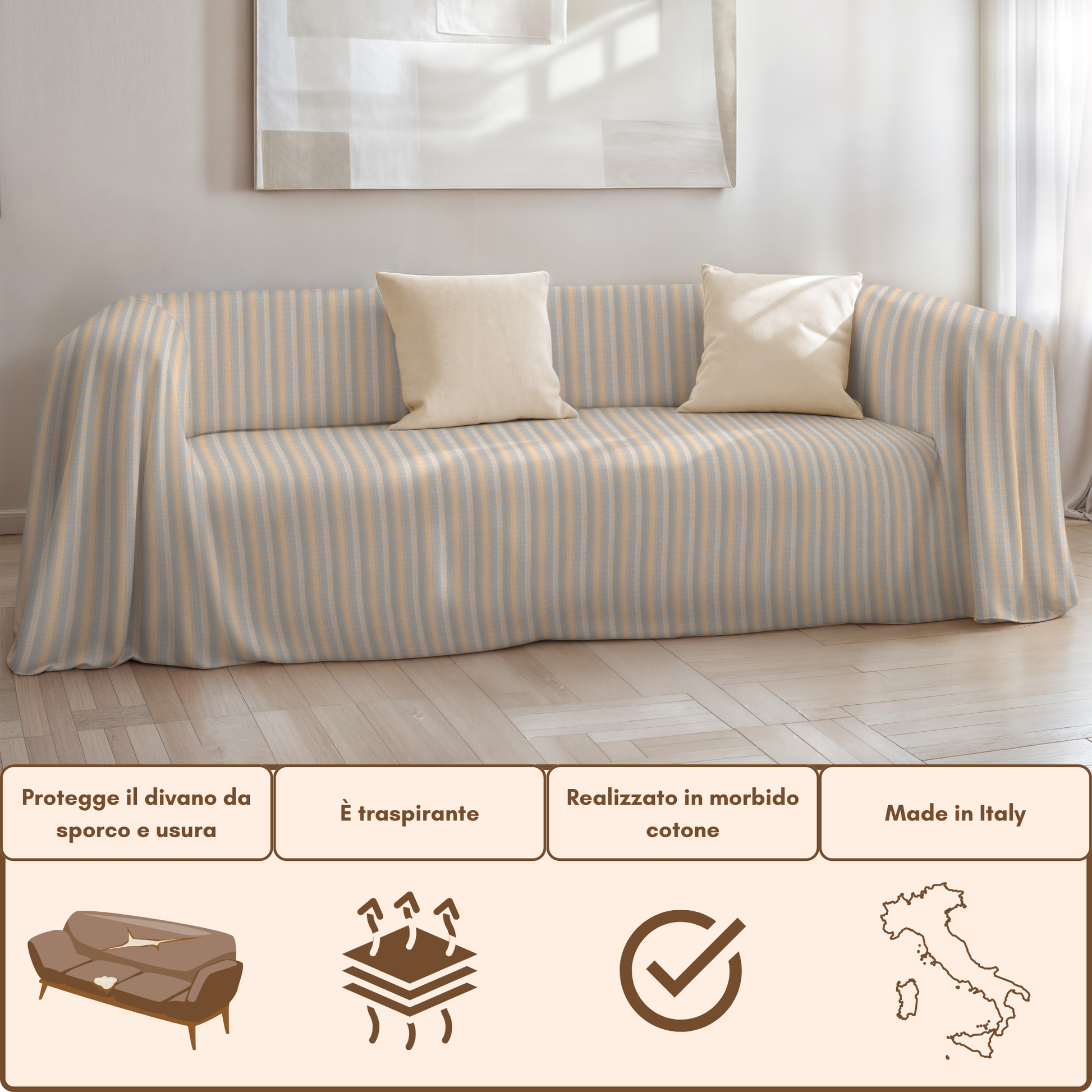 Oltre che come copriletto e copridivano potresti utilizzare il nostro telo copritutto come una morbida coperta estiva matrimoniale oppure una splendida tovaglia in cotone