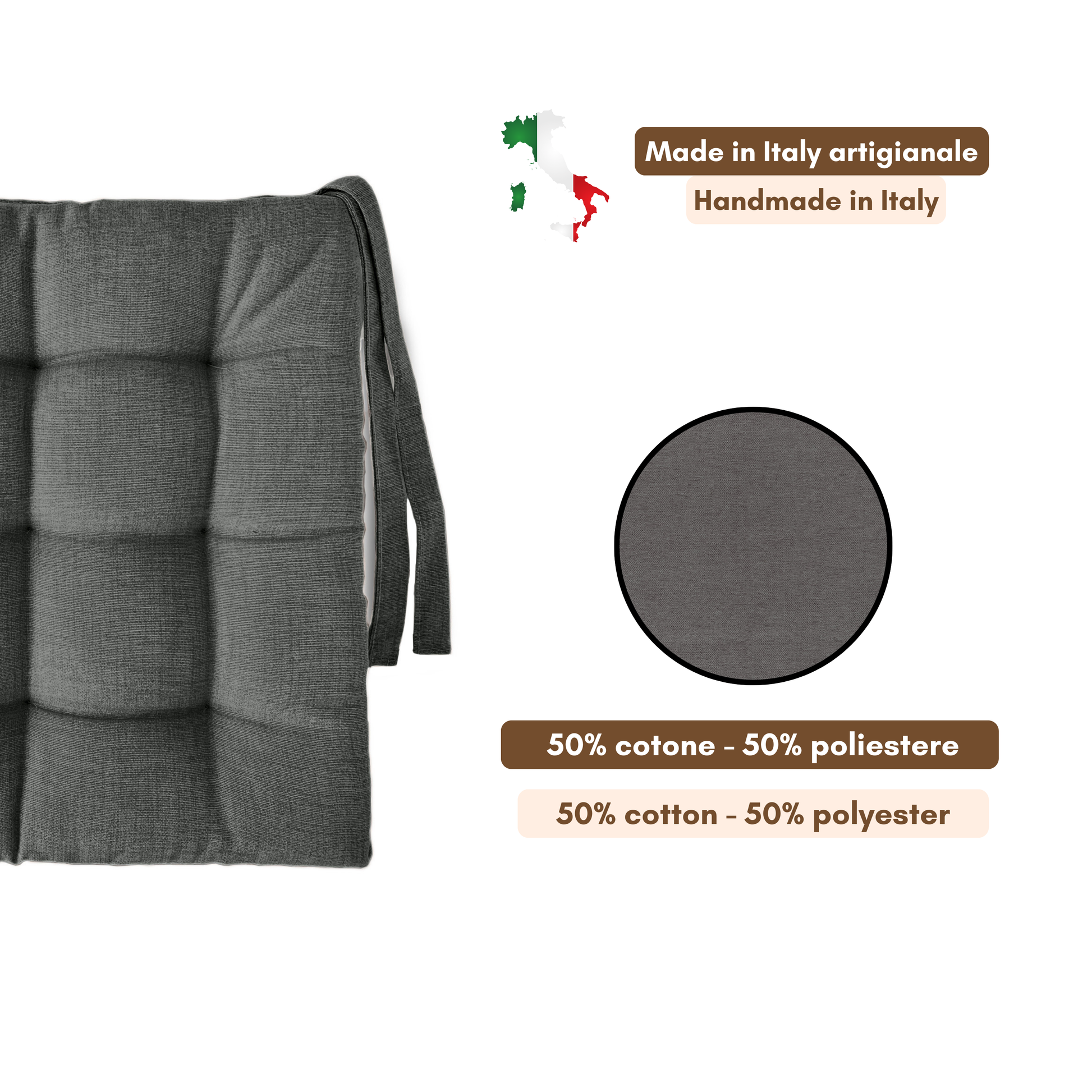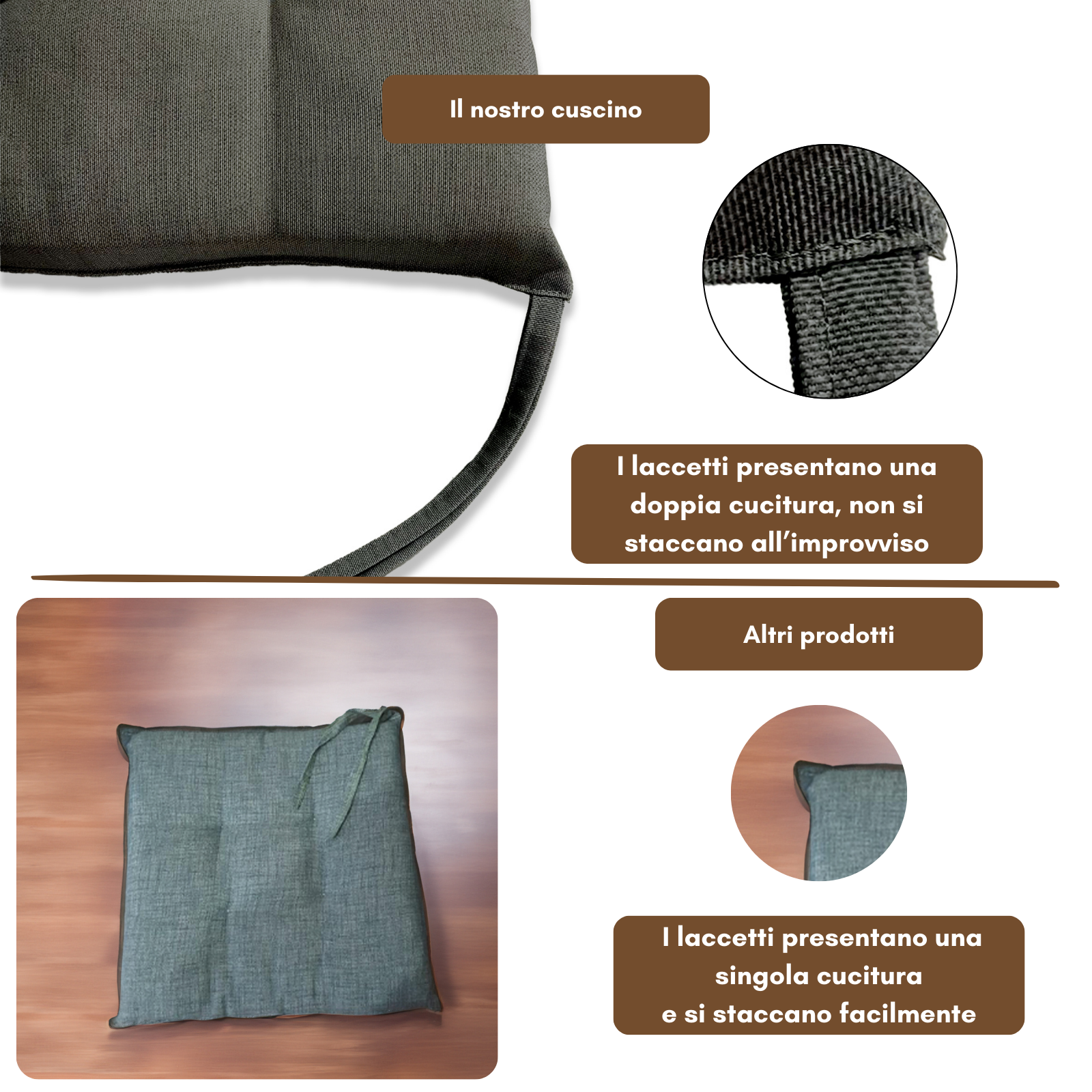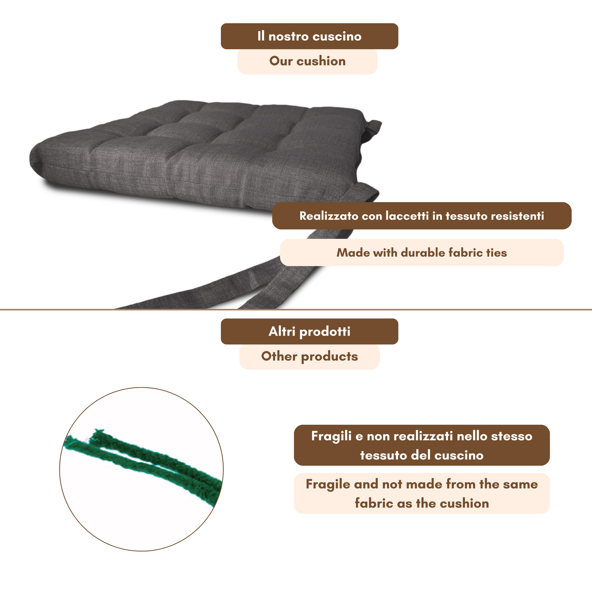 Fissaggio: puoi fissarlo alla sedia grazie alle due coppie di lacci poste posteriormente al cuscino.