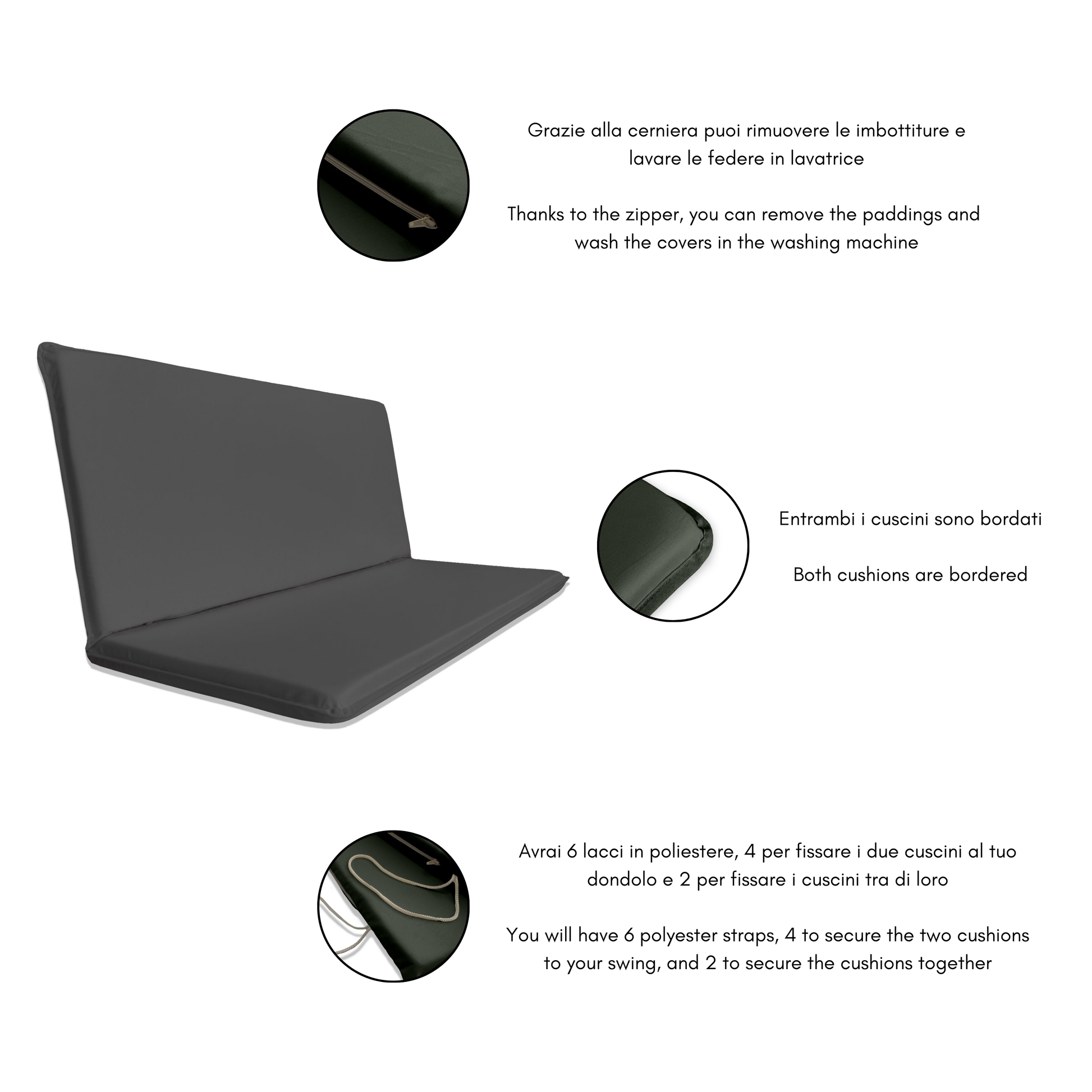 Realizzato con tessuto resistente ai raggi UV e allo sporco, proteggerà il tuo dondolo da agenti esterni.