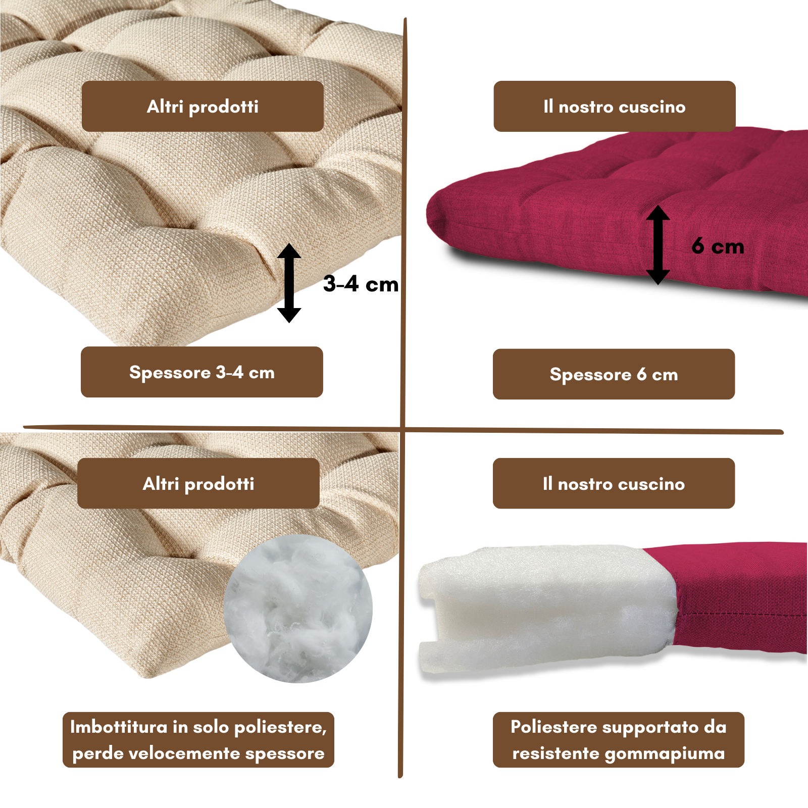 Imbottitura: gommapiuma 18 kg/mc rivestita con acrilico;