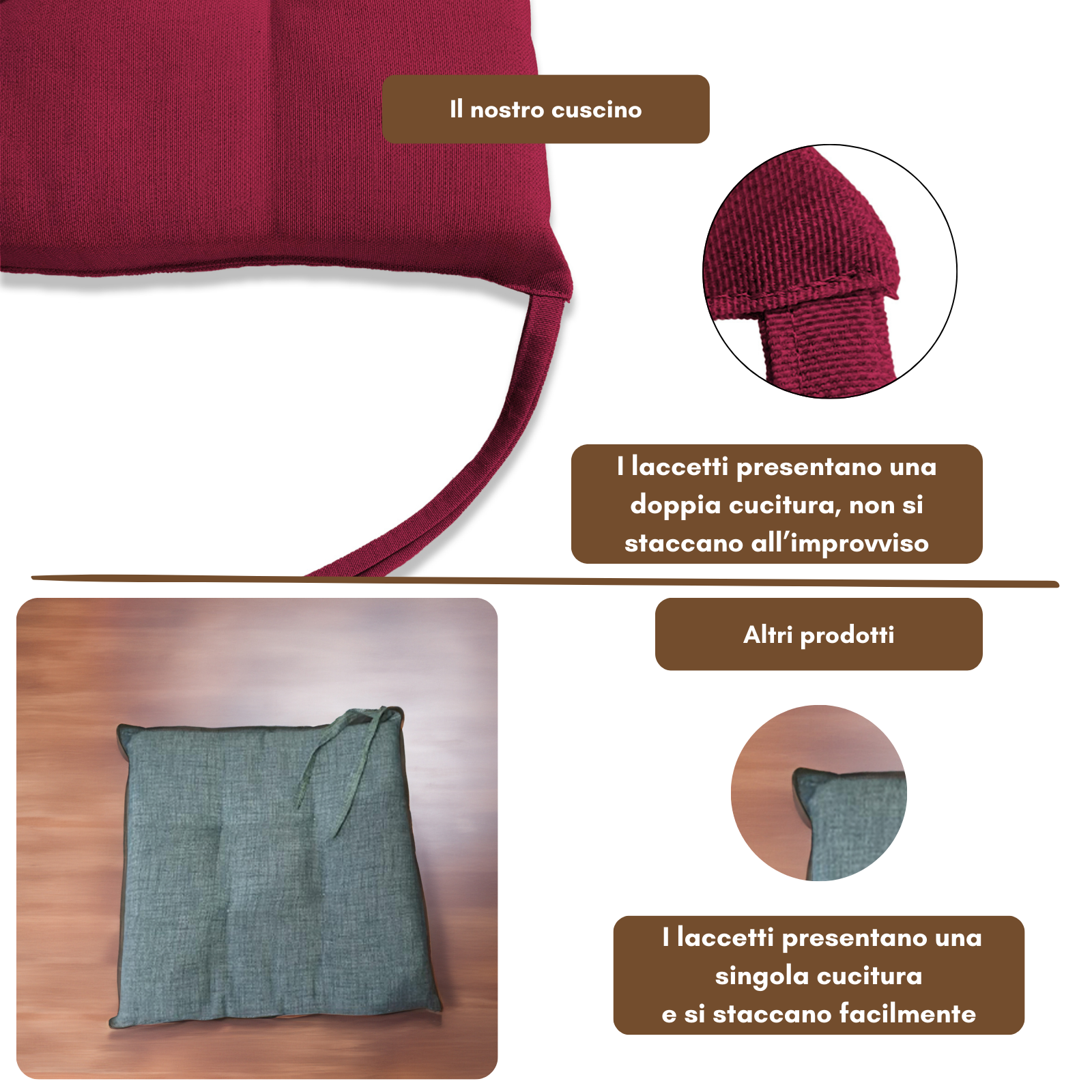 Fissaggio: puoi fissarlo alla sedia grazie alle due coppie di lacci poste posteriormente al cuscino.
