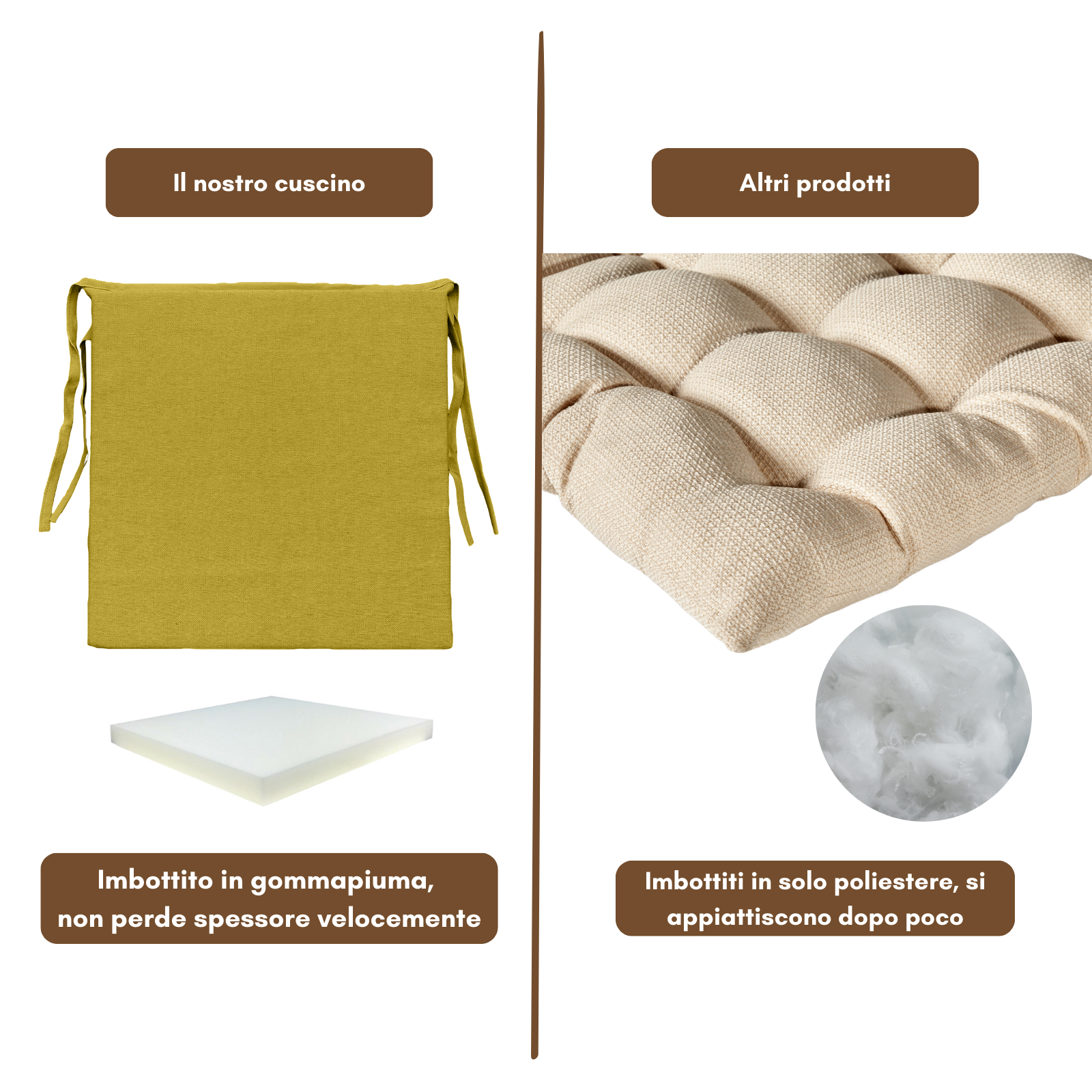 Possono essere dei comodi cuscini coprisedia da cucina ma anche dei resistenti coprisedia da esterno in modo da utilizzarti tutto l'anno come più preferisci!