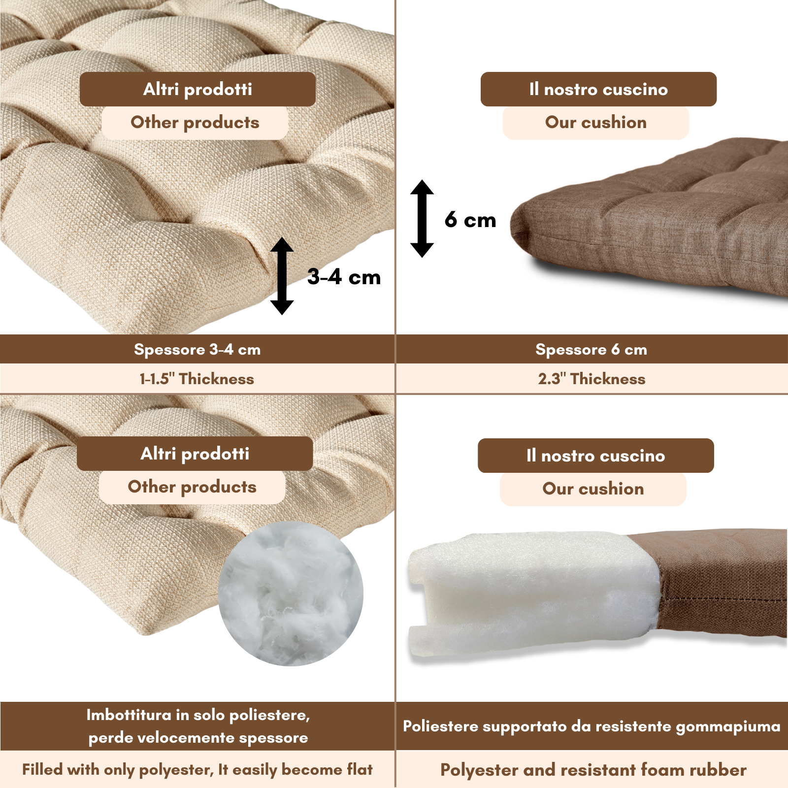 Imbottitura: gommapiuma 18 kg/mc rivestita con acrilico;