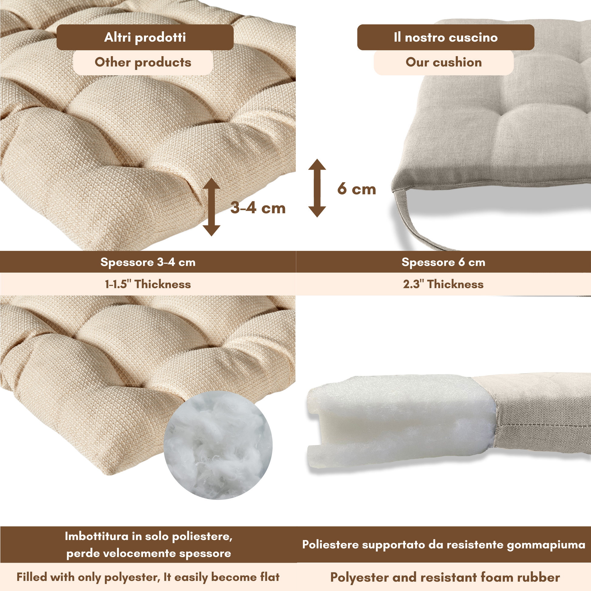 Imbottitura: gommapiuma 18 kg/mc rivestita con acrilico;