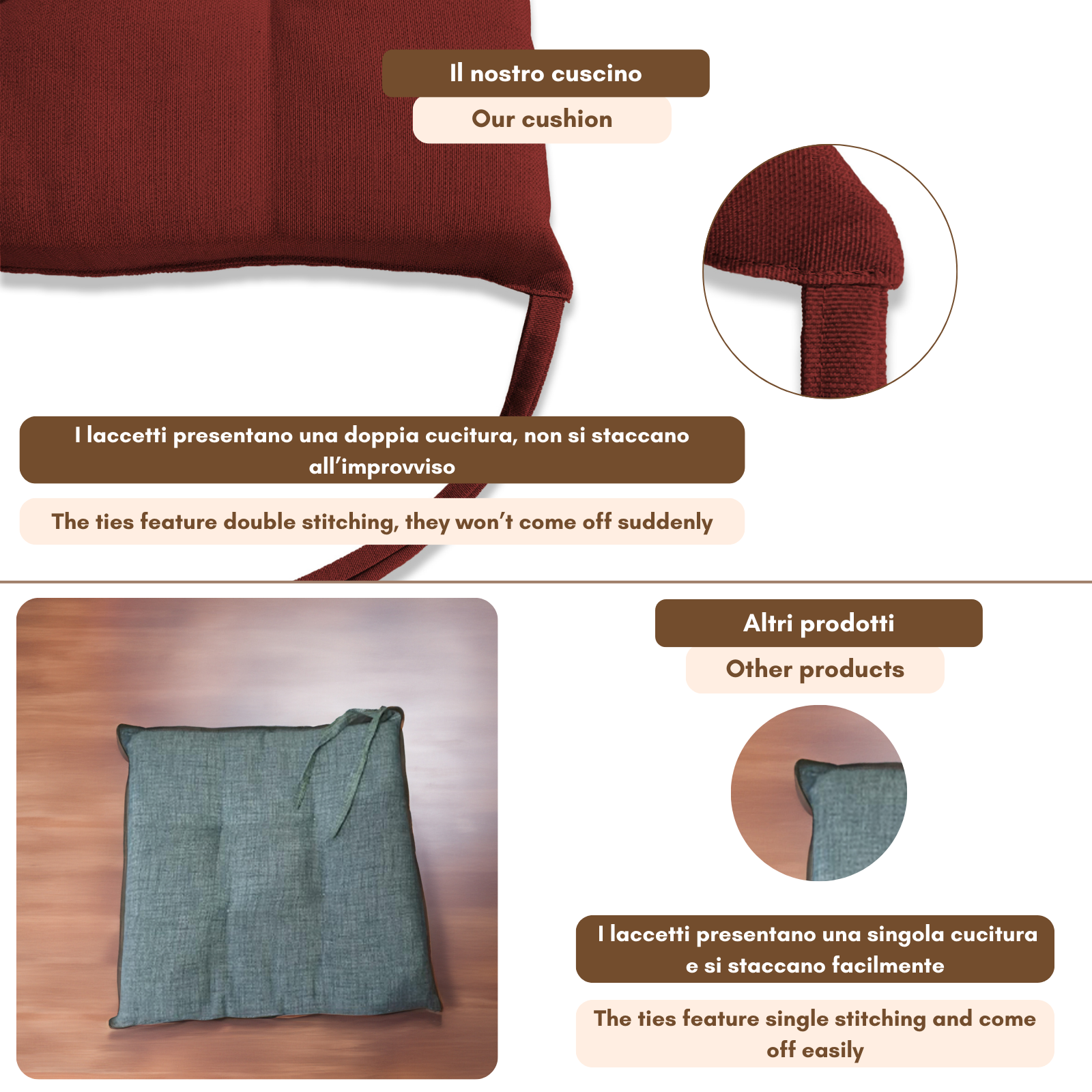 Fissaggio: puoi fissarlo alla sedia grazie alle due coppie di lacci poste posteriormente al cuscino.