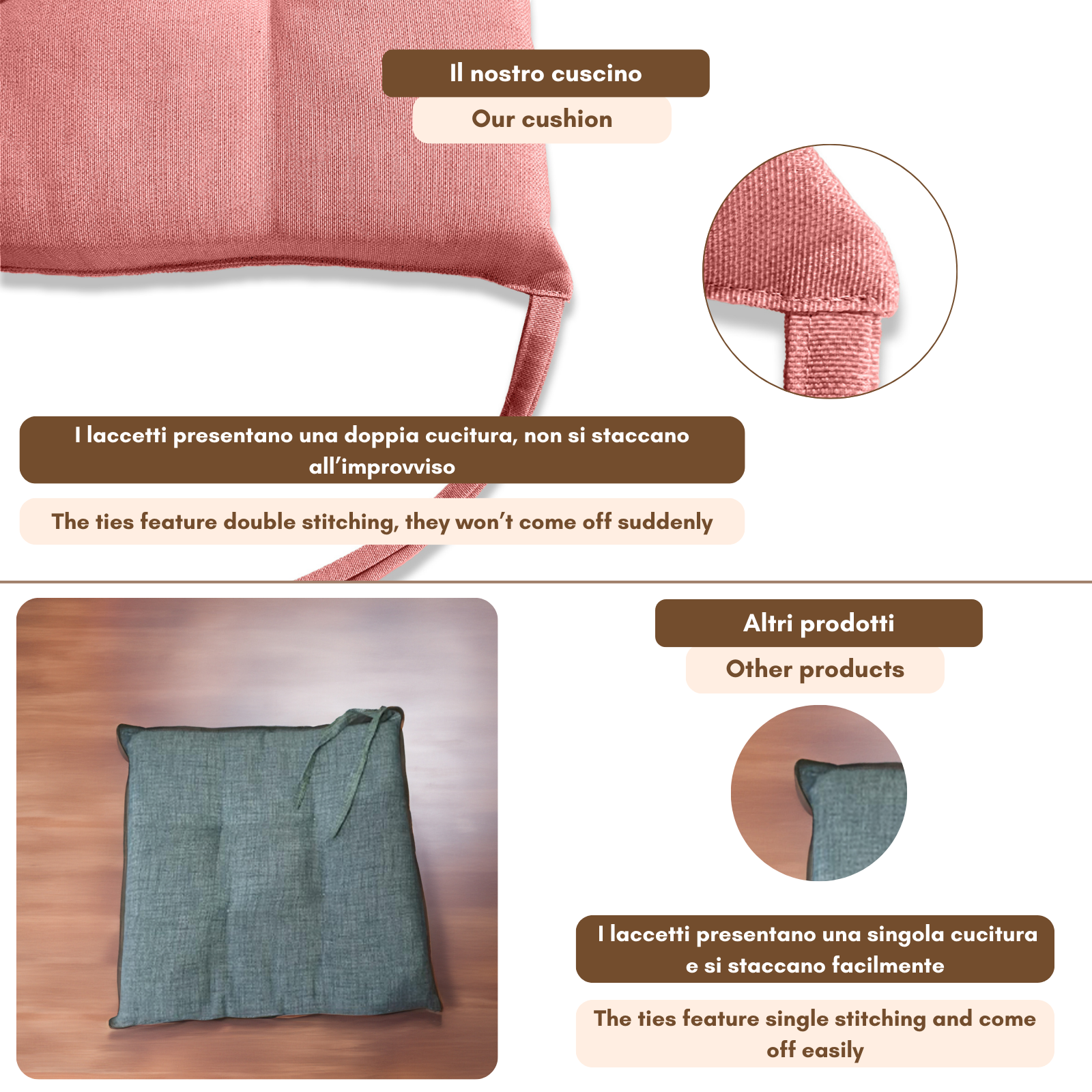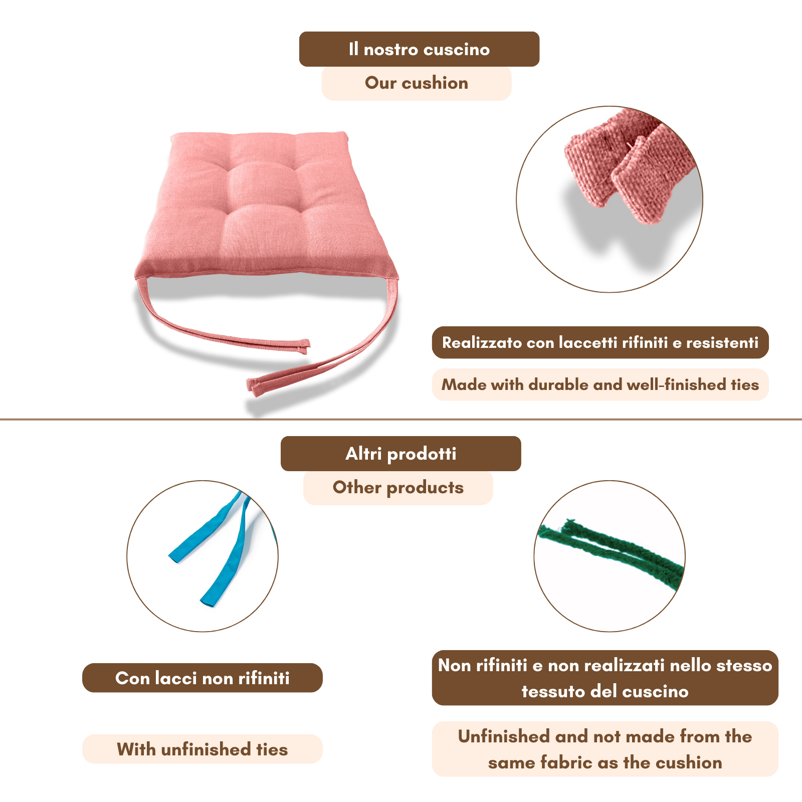Fissaggio: puoi fissarlo alla sedia grazie alle due coppie di lacci poste posteriormente al cuscino.