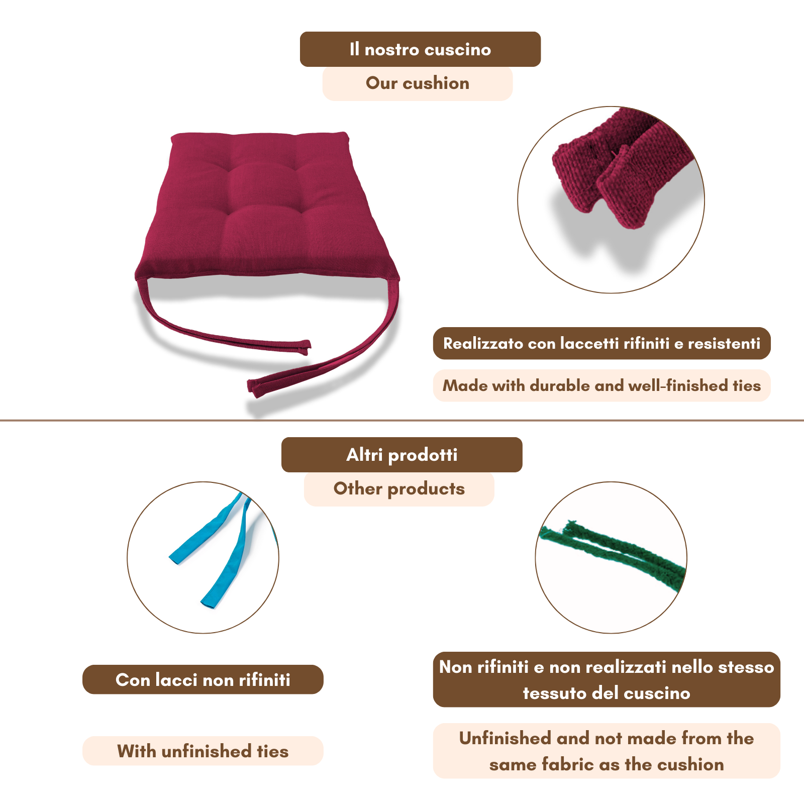 Fissaggio: puoi fissarlo alla sedia grazie alle due coppie di lacci poste posteriormente al cuscino.