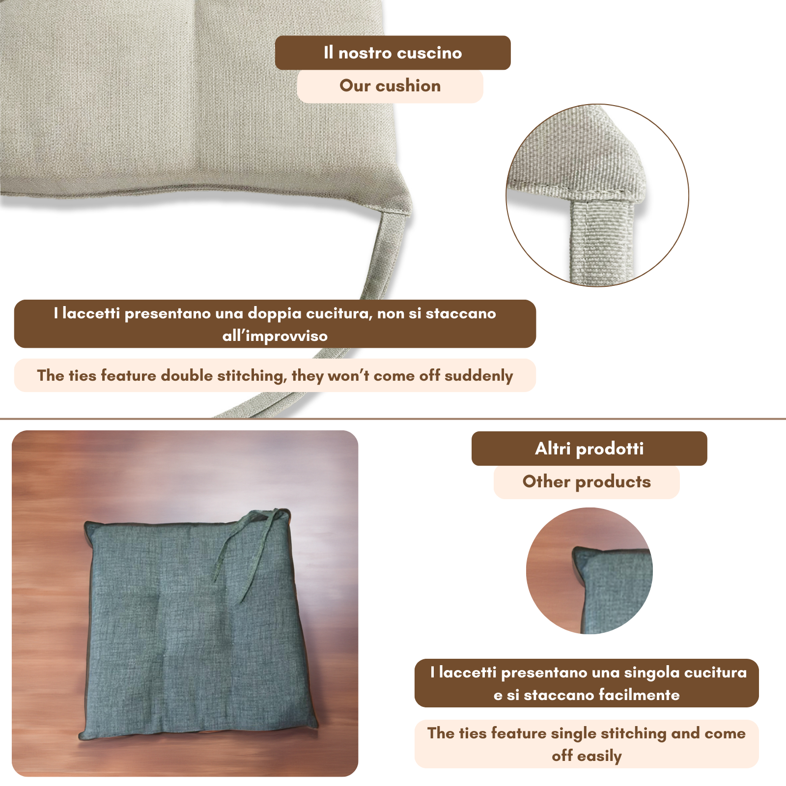 Fissaggio: puoi fissarlo alla sedia grazie alle due coppie di lacci poste posteriormente al cuscino.