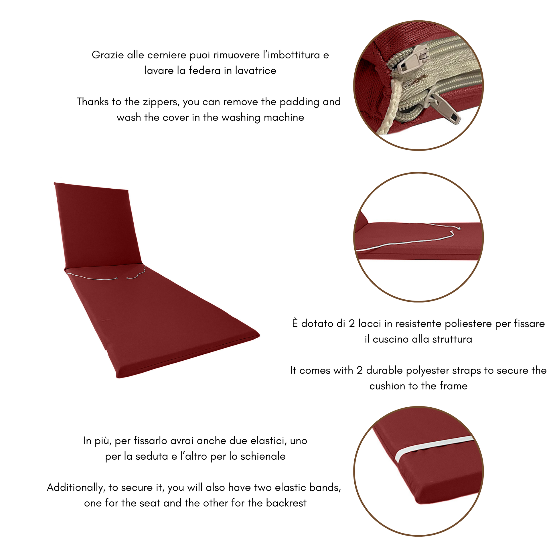 Cuscino bordeaux antimacchia per lettino prendisole - linea arena