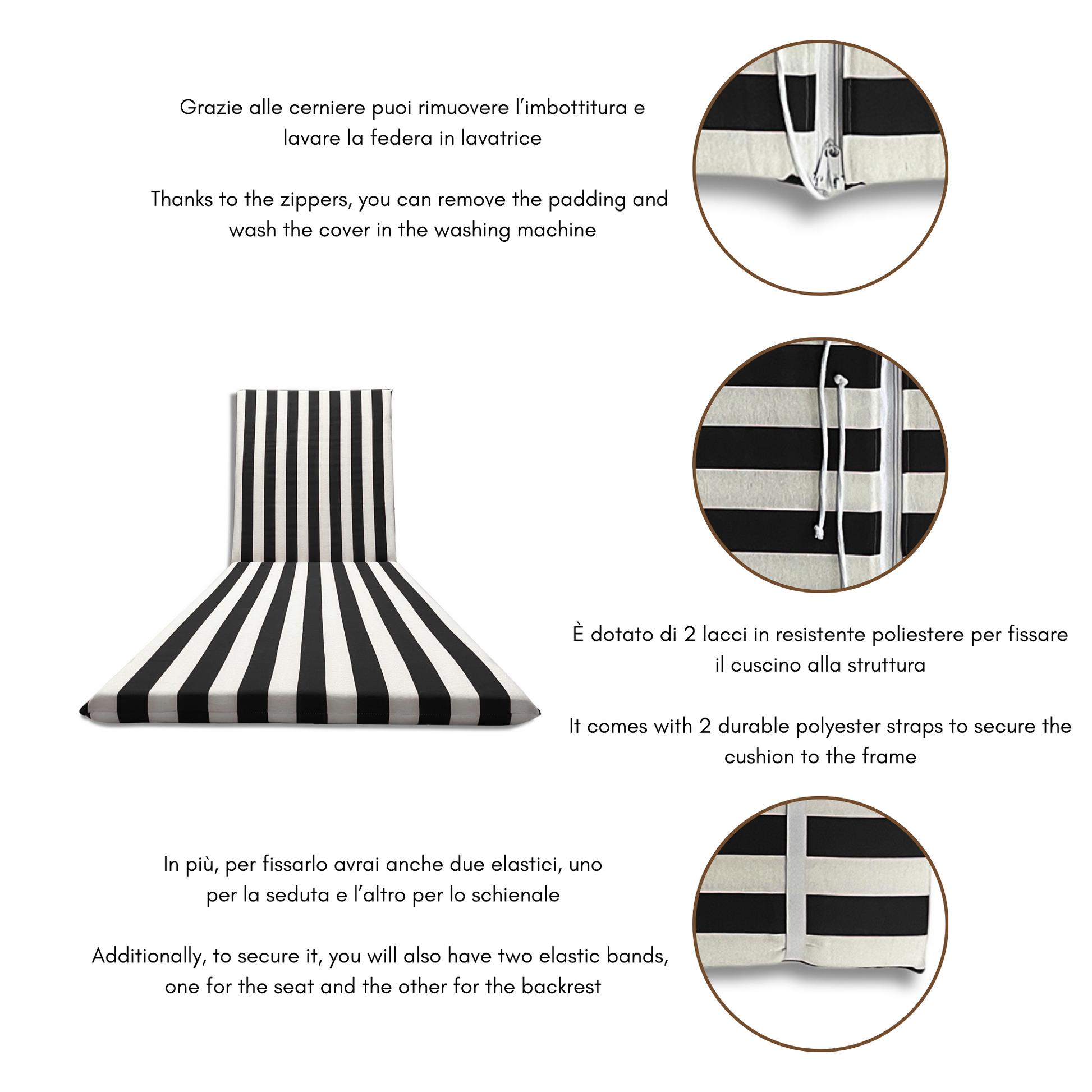 L'imbottitura di alta qualità vi aiuterà in tutto ciò e anche a migliorare la postura durante il riposo sul lettino prendisole, evitando fastidiosi dolori alla schiena e garantendo un comfort ineguagliabile durante le tue pause al sole.
