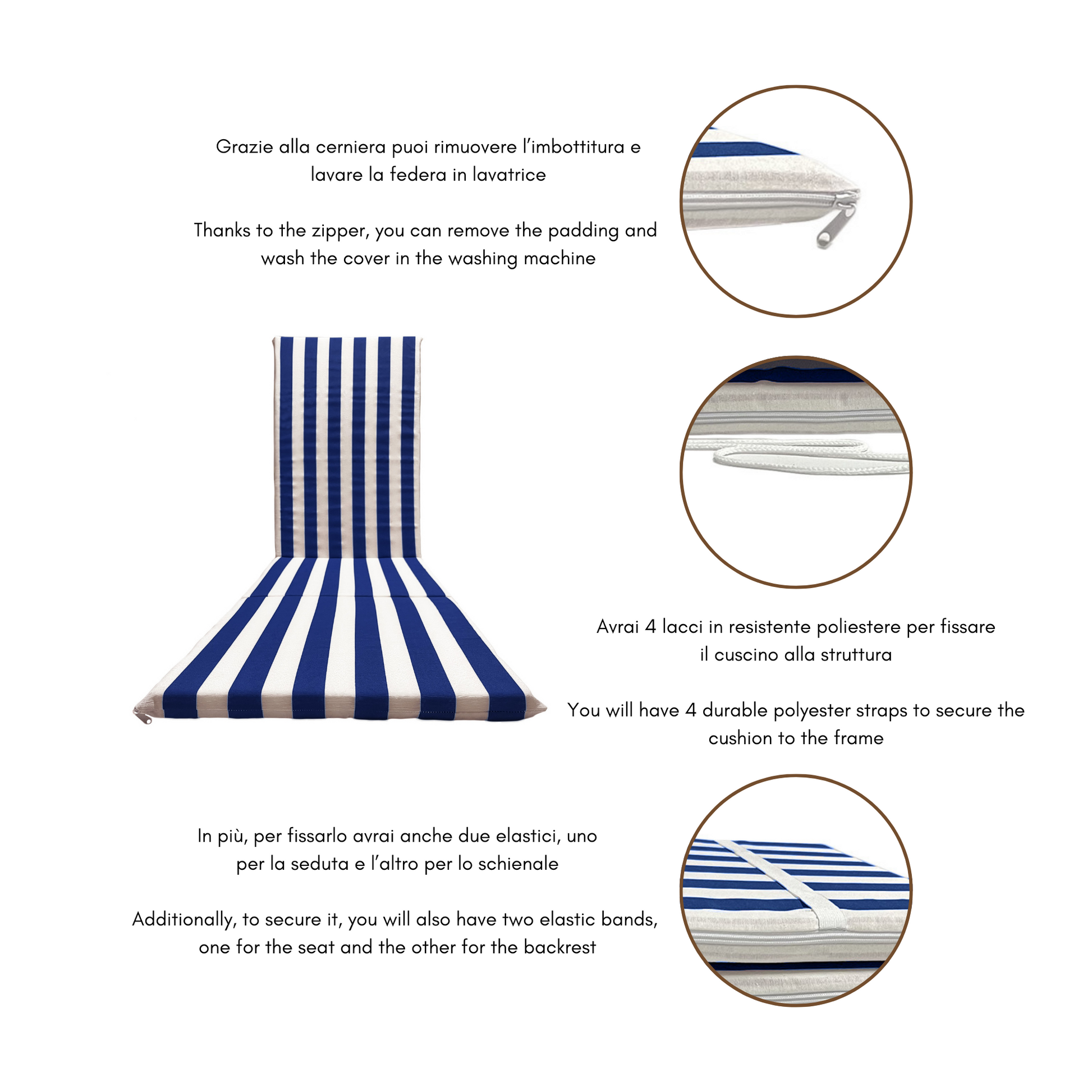 Cuscino fasciato Blu per Sdraio mare 165x50 cm - Prolunga
