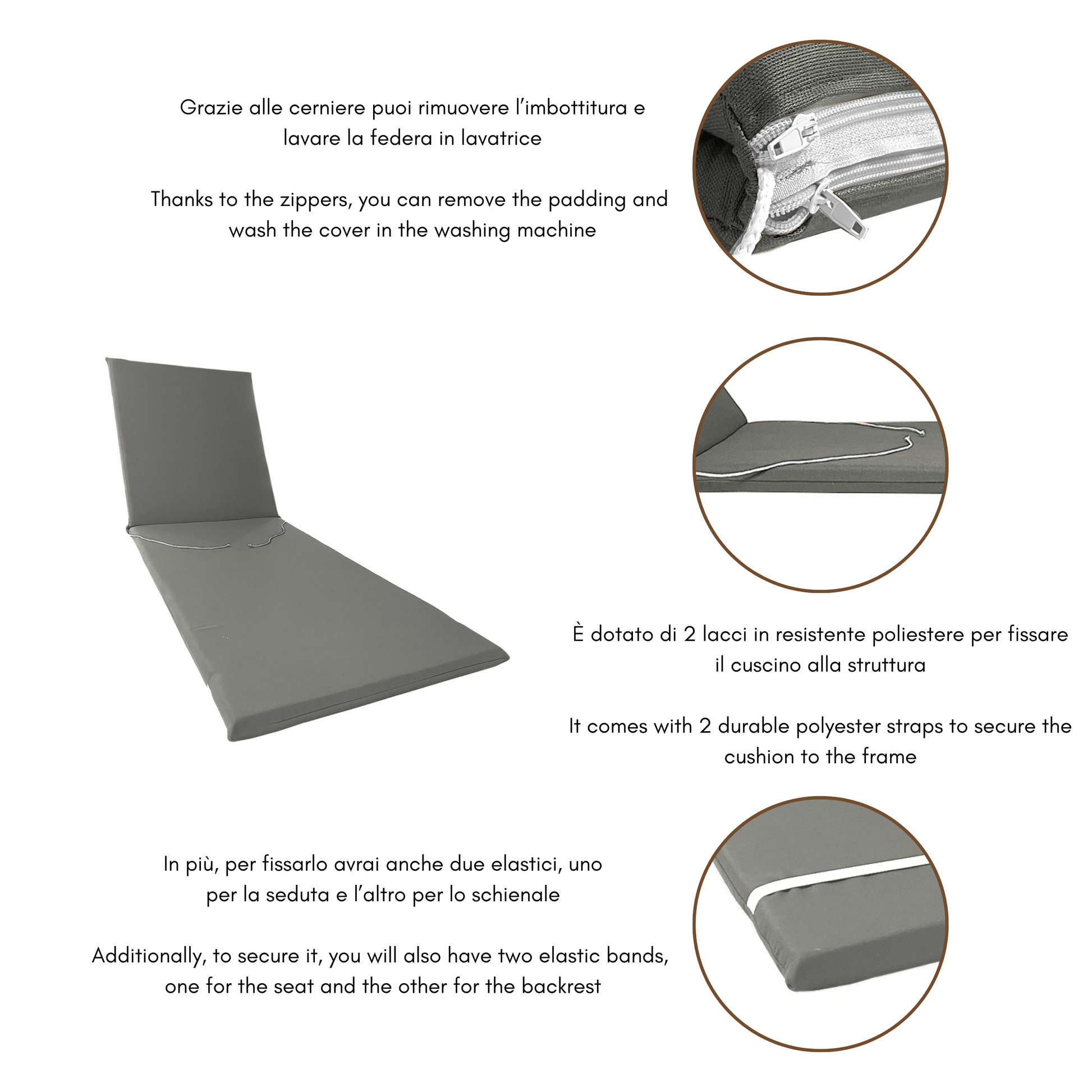 L'imbottitura di alta qualità vi aiuterà in tutto ciò e anche a migliorare la postura durante il riposo sul lettino prendisole, evitando fastidiosi dolori alla schiena e garantendo un comfort ineguagliabile durante le tue pause al sole.