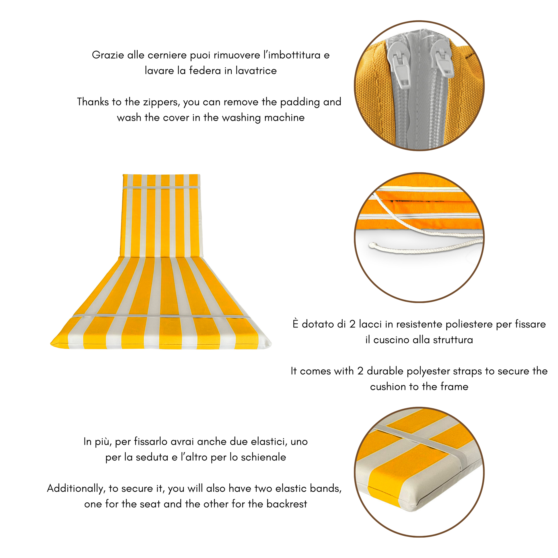 L'imbottitura di alta qualità vi aiuterà in tutto ciò e anche a migliorare la postura durante il riposo sul lettino prendisole, evitando fastidiosi dolori alla schiena e garantendo un comfort ineguagliabile durante le tue pause al sole.