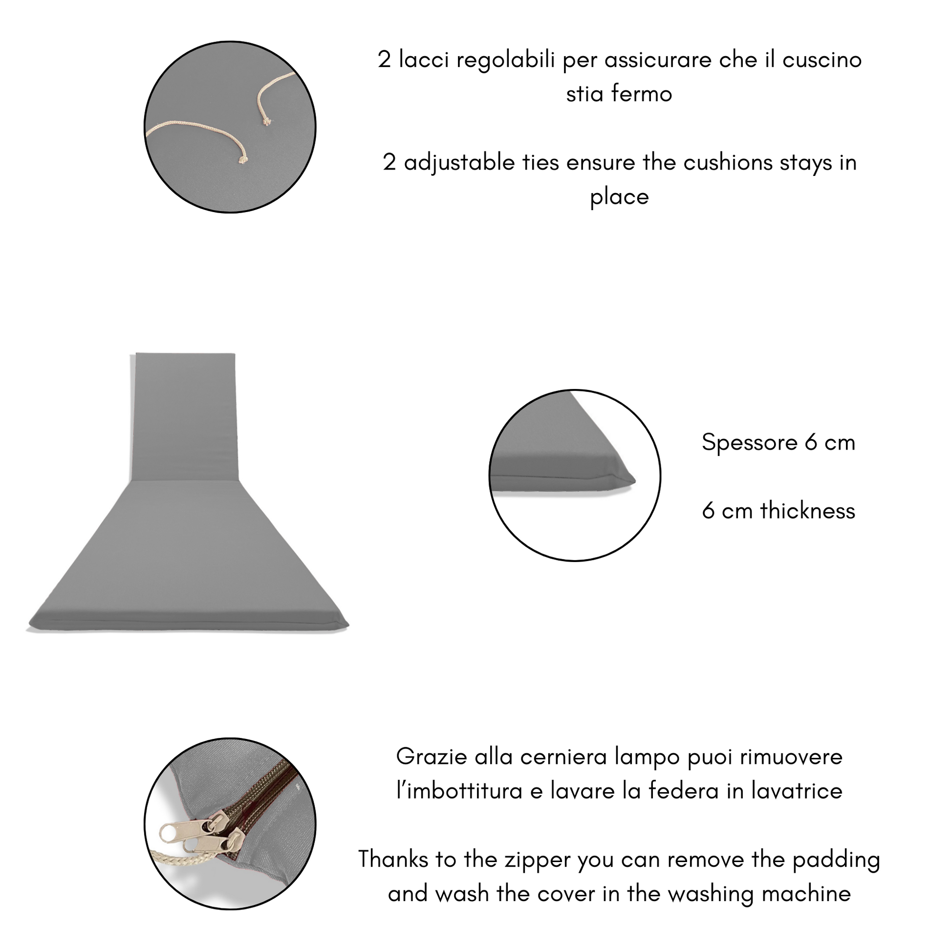 Cuscino Grigio Idrorepellente per Lettino Prendisole - Linea Dralon