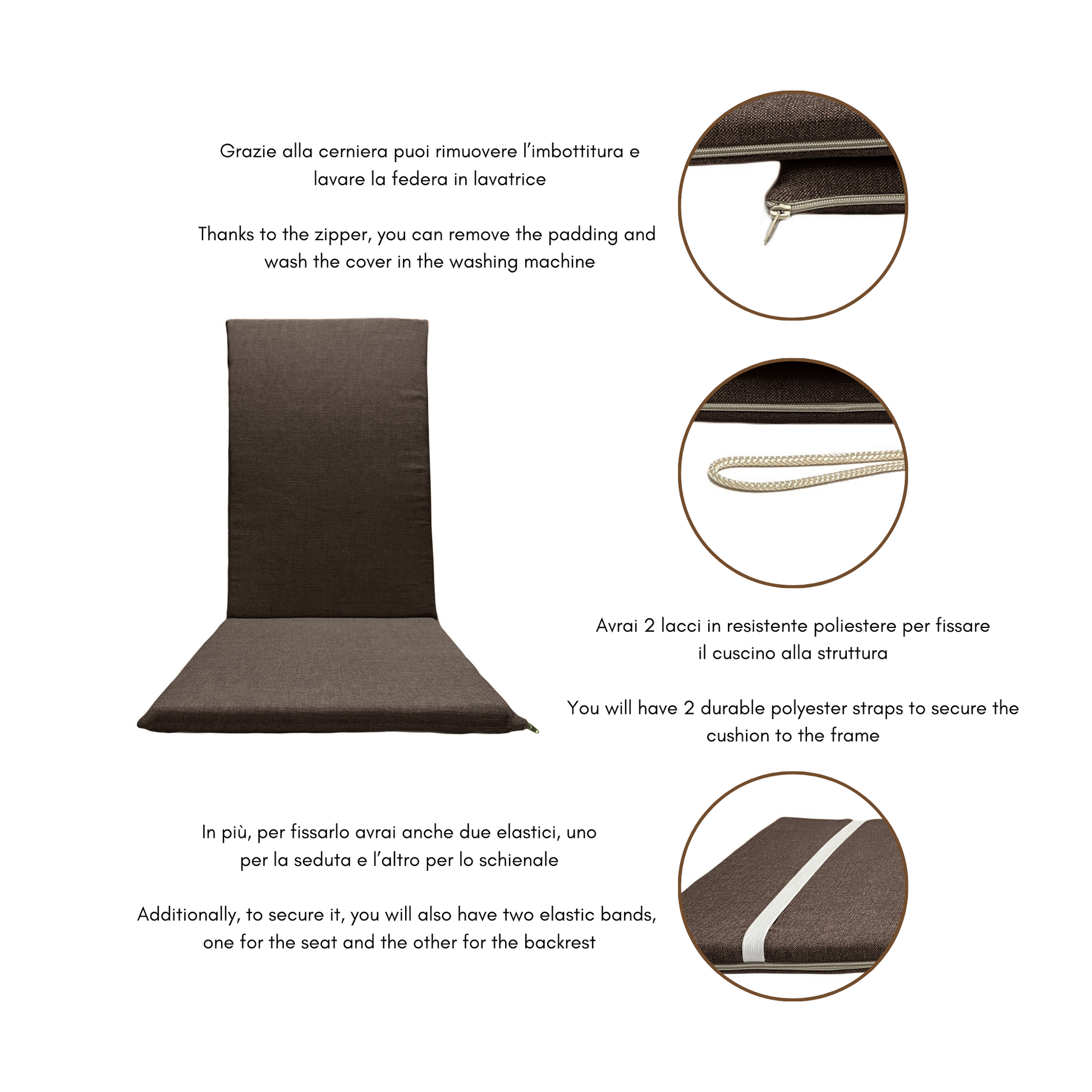 Cuscino Marrone per sedia Sdraio - Schienale alto