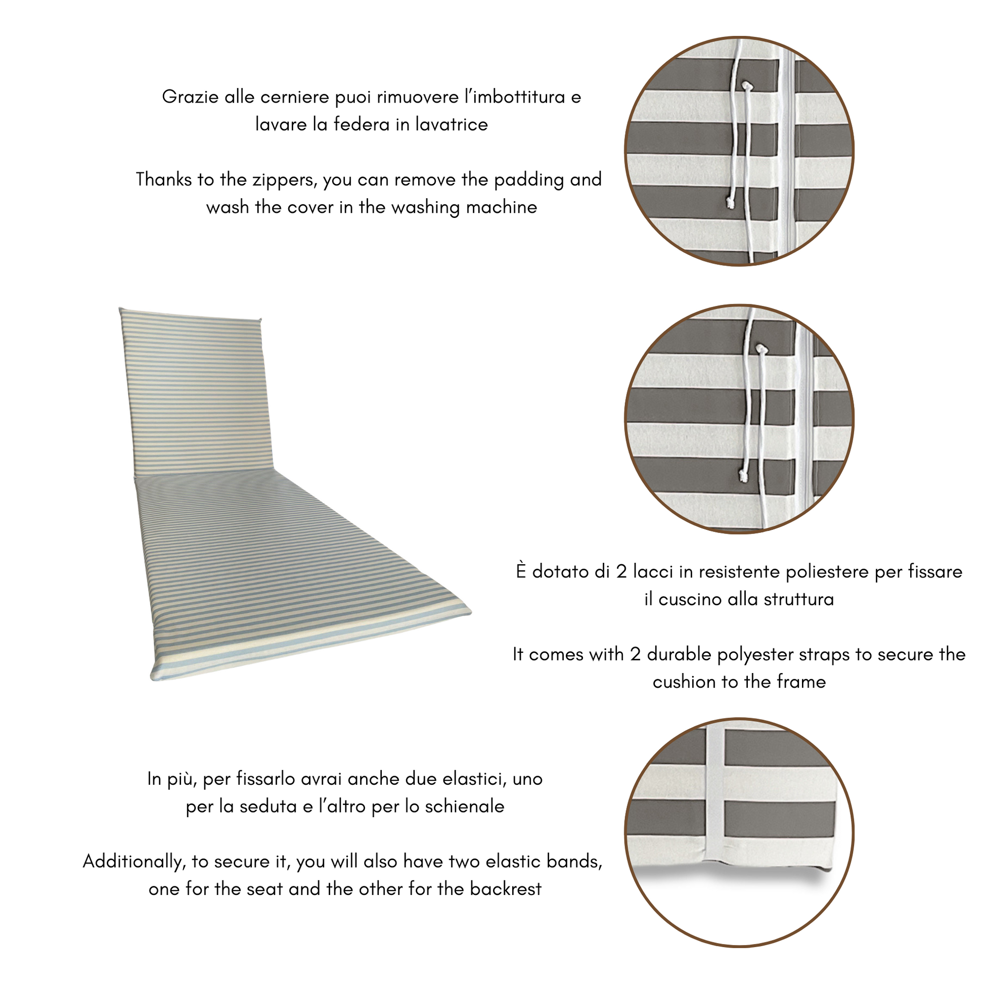 L'imbottitura di alta qualità vi aiuterà in tutto ciò e anche a migliorare la postura durante il riposo sul lettino prendisole, evitando fastidiosi dolori alla schiena e garantendo un comfort ineguagliabile durante le tue pause al sole.