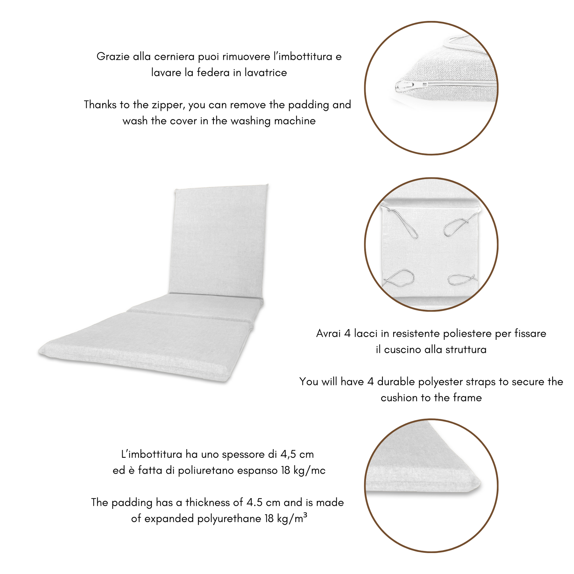 Imbottitura: gommapiuma 18kg/mc;