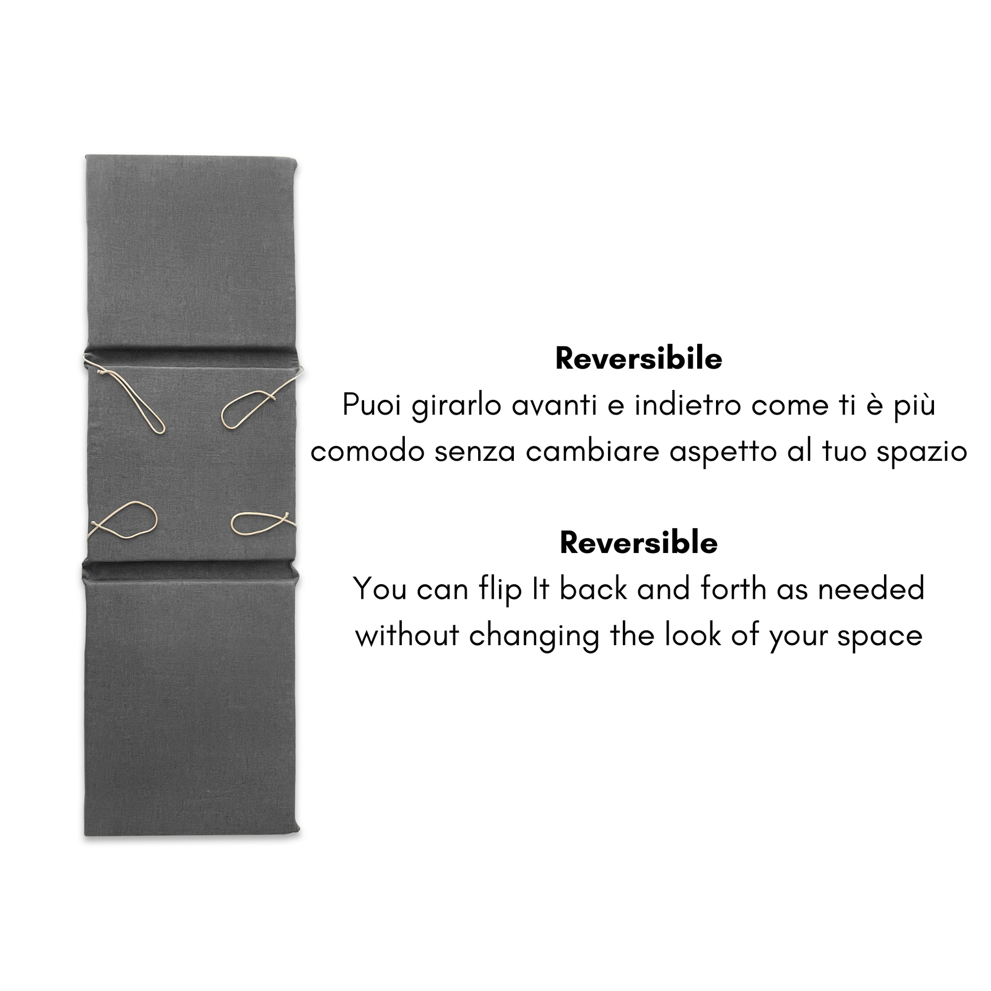 Realizzato artigianalmente in Italia, il suo morbido rivestimento in tessuto misto cotone-poliestere e l'imbottitura in gommapiuma lo rendono comodo e resistente.
