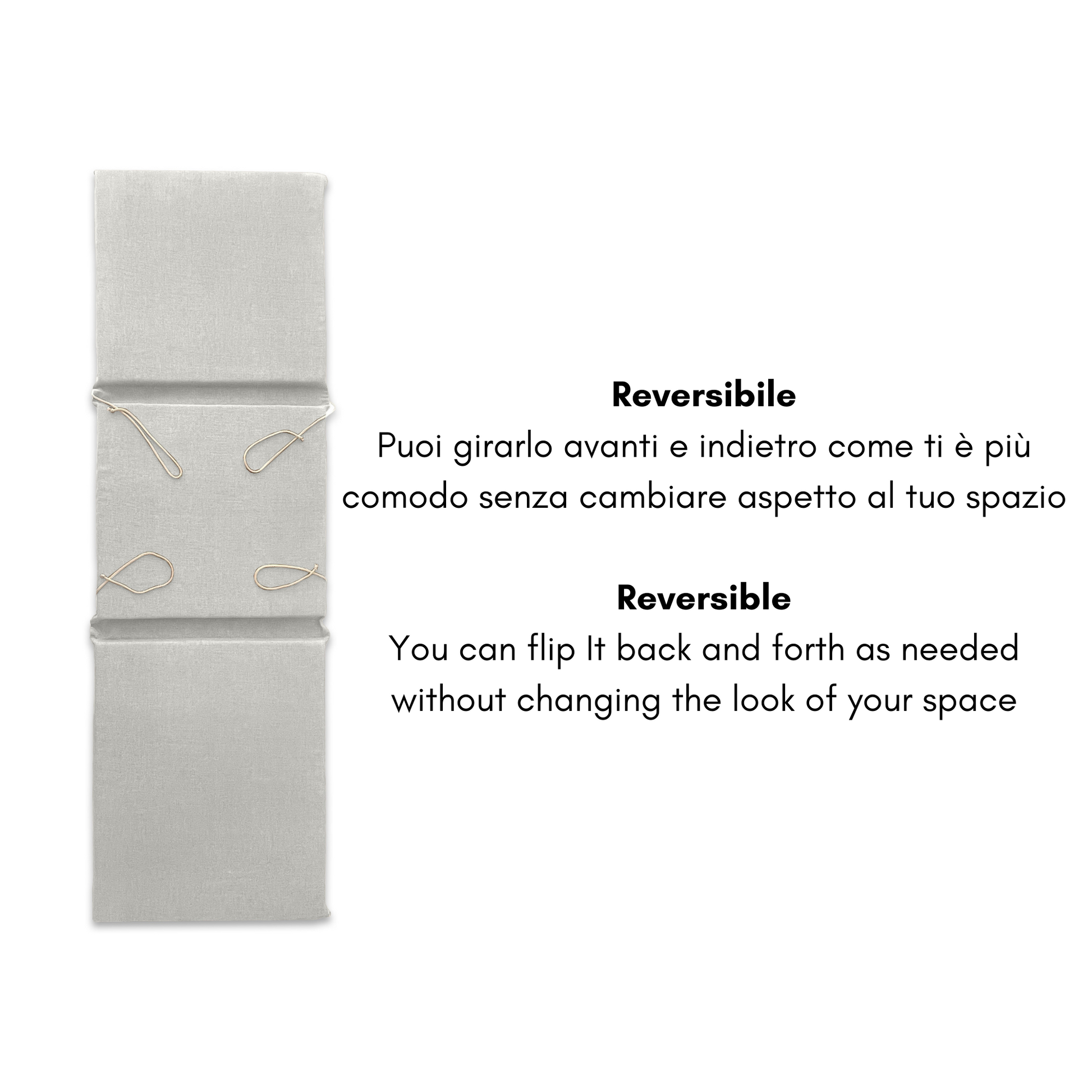 Realizzato artigianalmente in Italia, il suo morbido rivestimento in tessuto misto cotone-poliestere e l'imbottitura in gommapiuma lo rendono comodo e resistente.