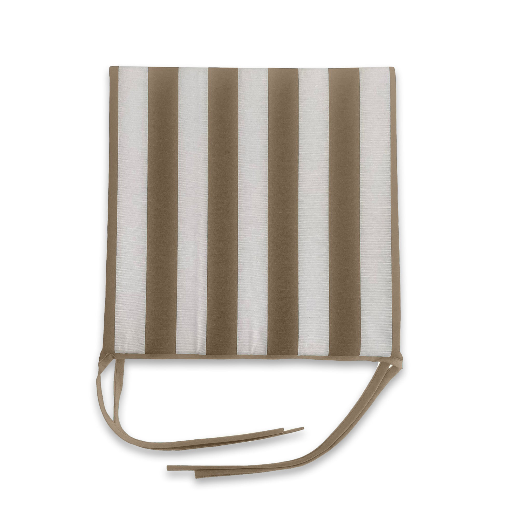 Realizzati in cotone fasciato bianco e beige e imbottiti in spugna, questi cuscini offrono un supporto extra per sedie da cucina e da giardino.