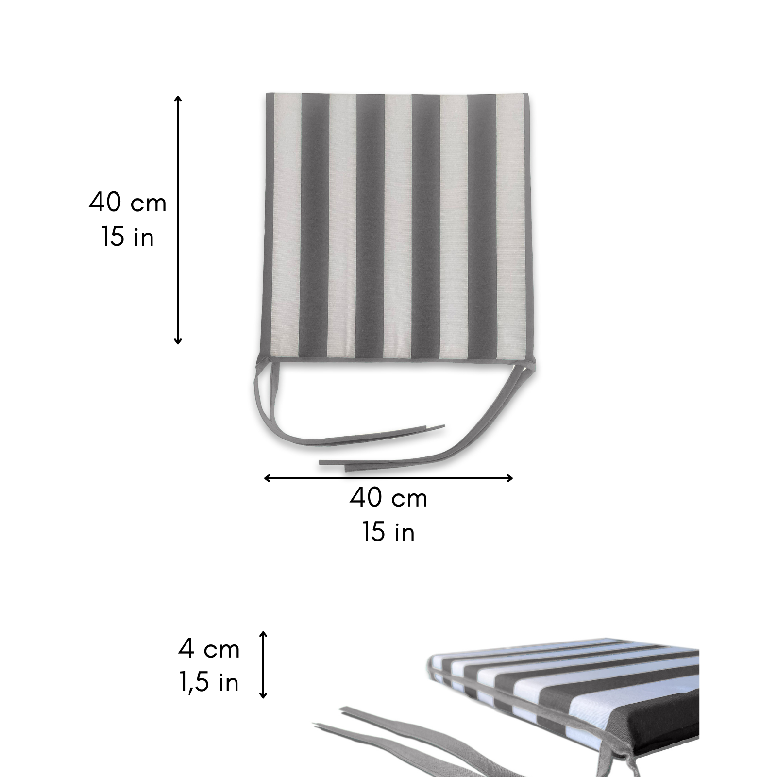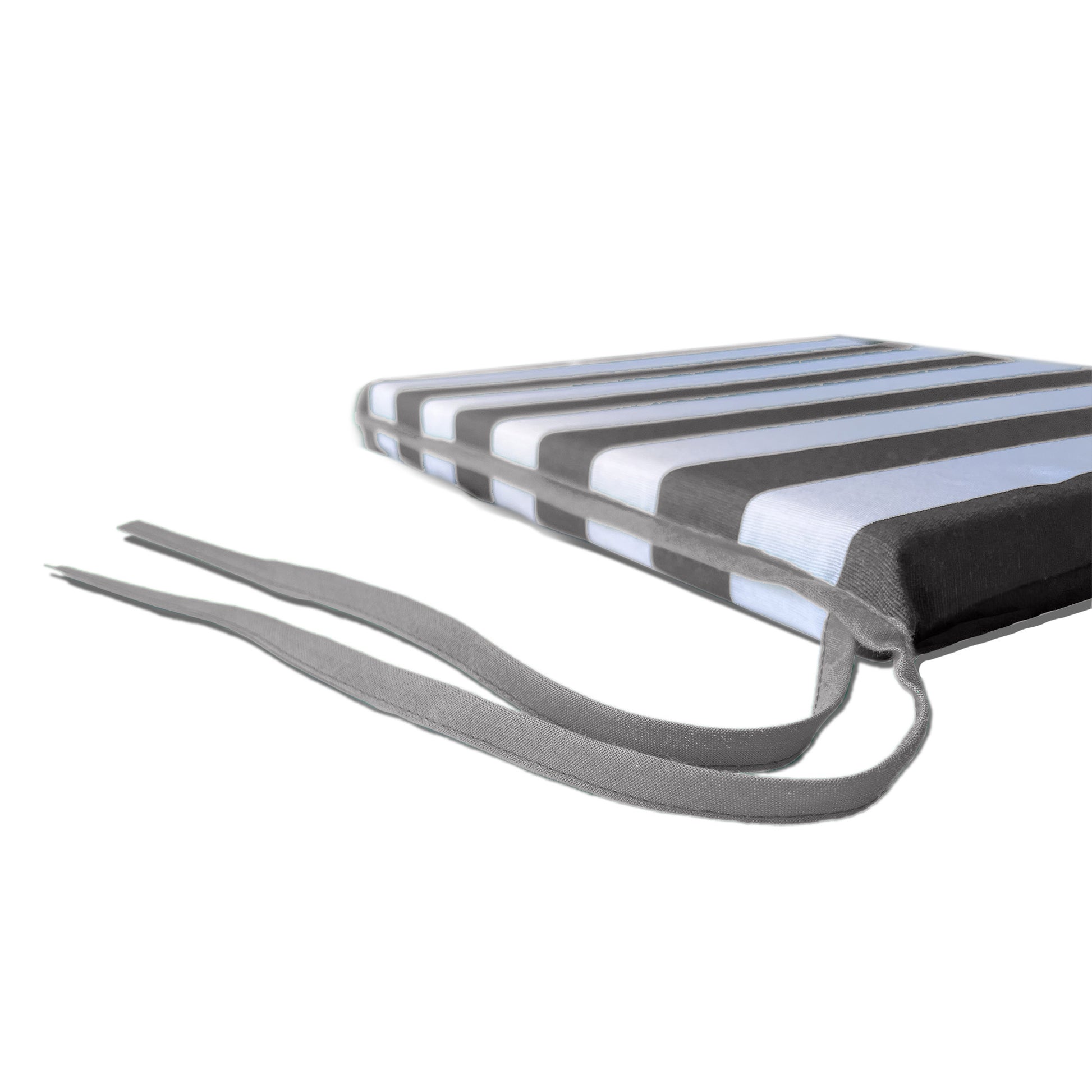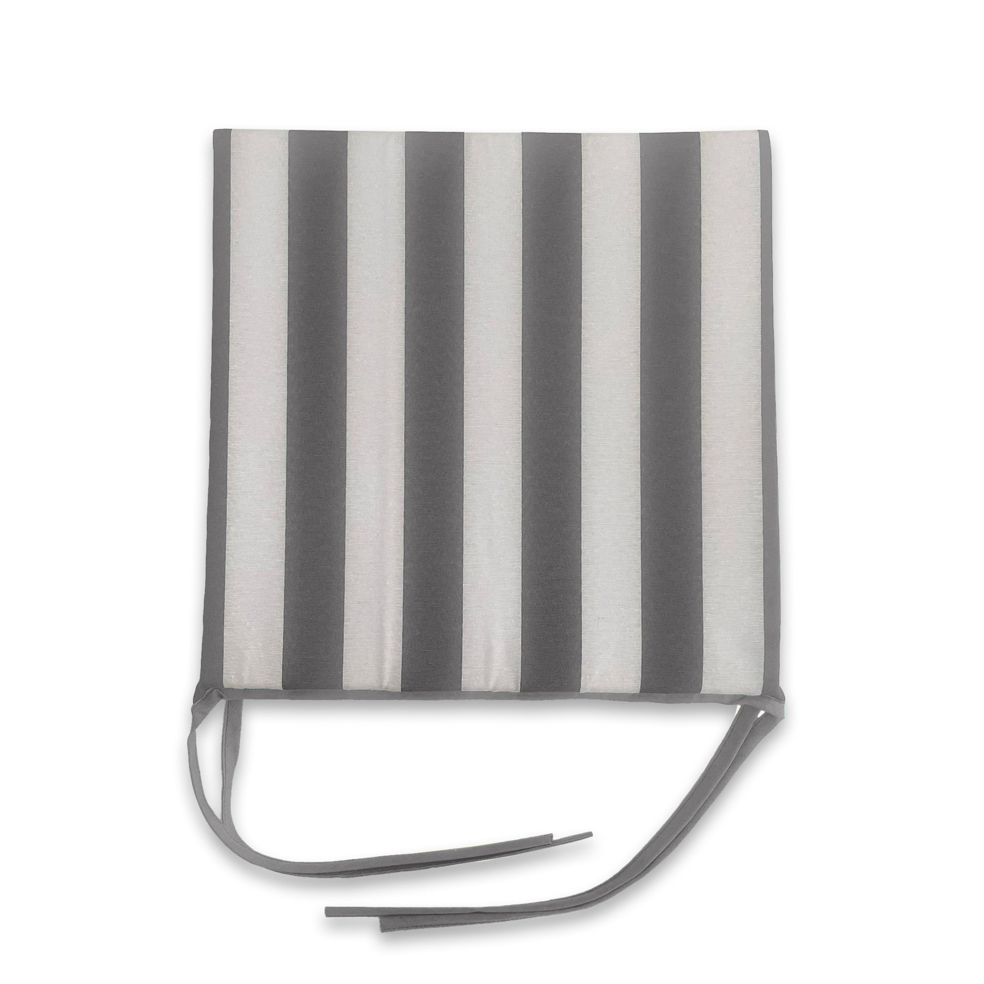 Realizzati in cotone fasciato bianco e grigio e imbottiti in spugna, questi cuscini offrono un supporto extra per sedie da cucina e da giardino.