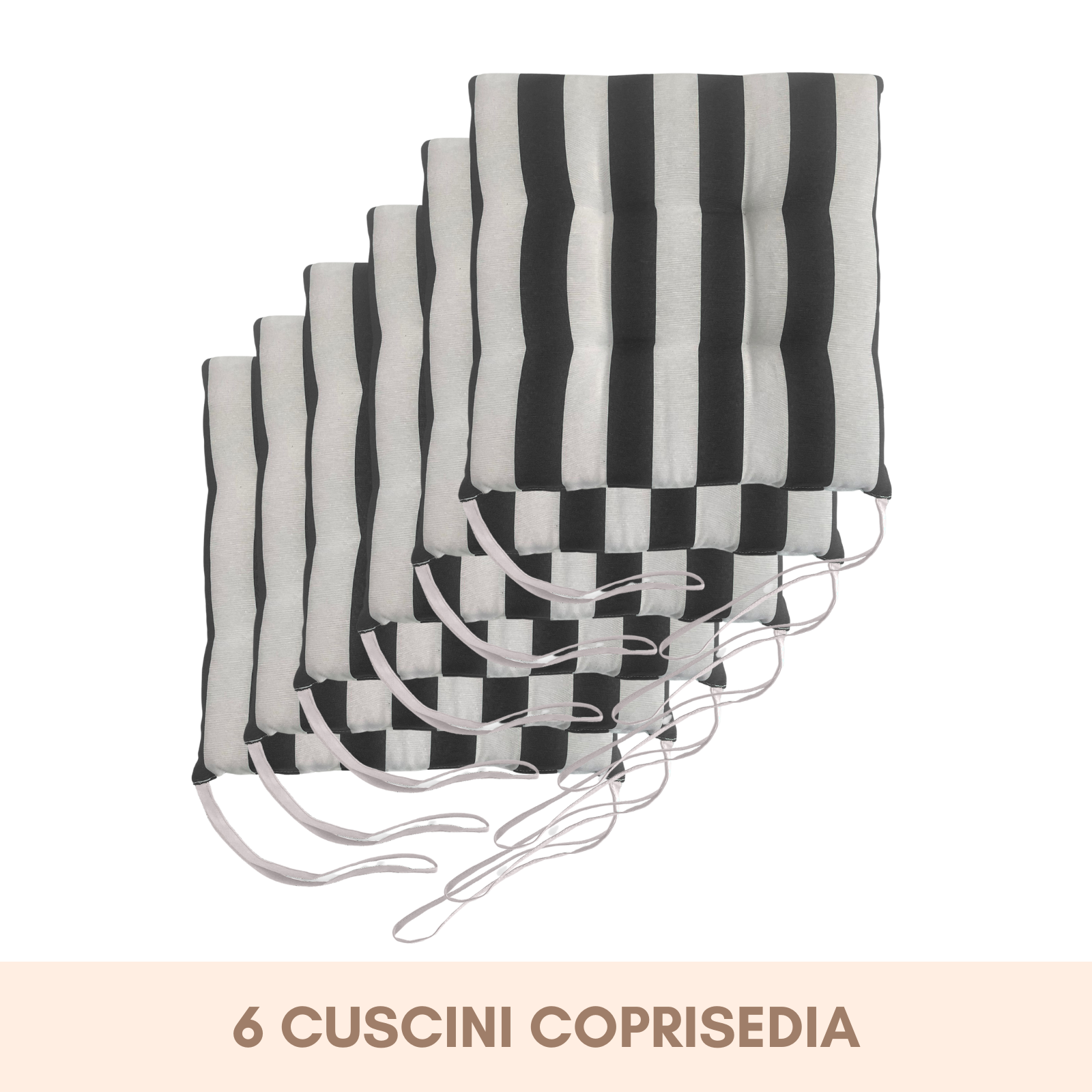 Set 6 cuscini Copri Sedie trapuntati Bianco e Nero - Linea Capri