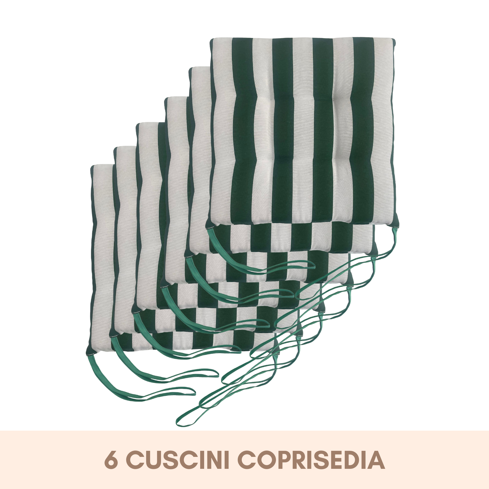 Set 6 cuscini Copri Sedie trapuntati Bianco e Verde - Linea Capri