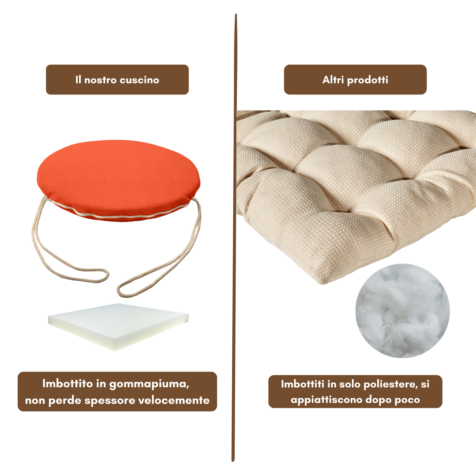 Il nostro cuscino rotondo per sedia è imbottito in soffice e resistente gommapiuma, facilmente rimovibile tramite la cerniera lampo.