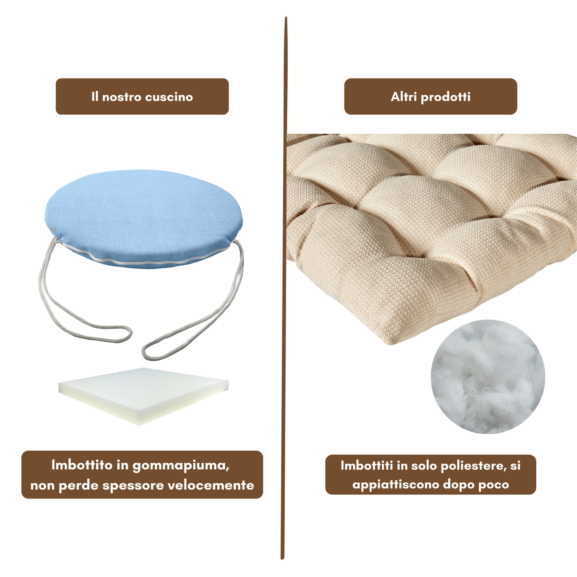 Il nostro cuscino rotondo per sedia è imbottito in soffice e resistente gommapiuma, facilmente rimovibile tramite la cerniera lampo.