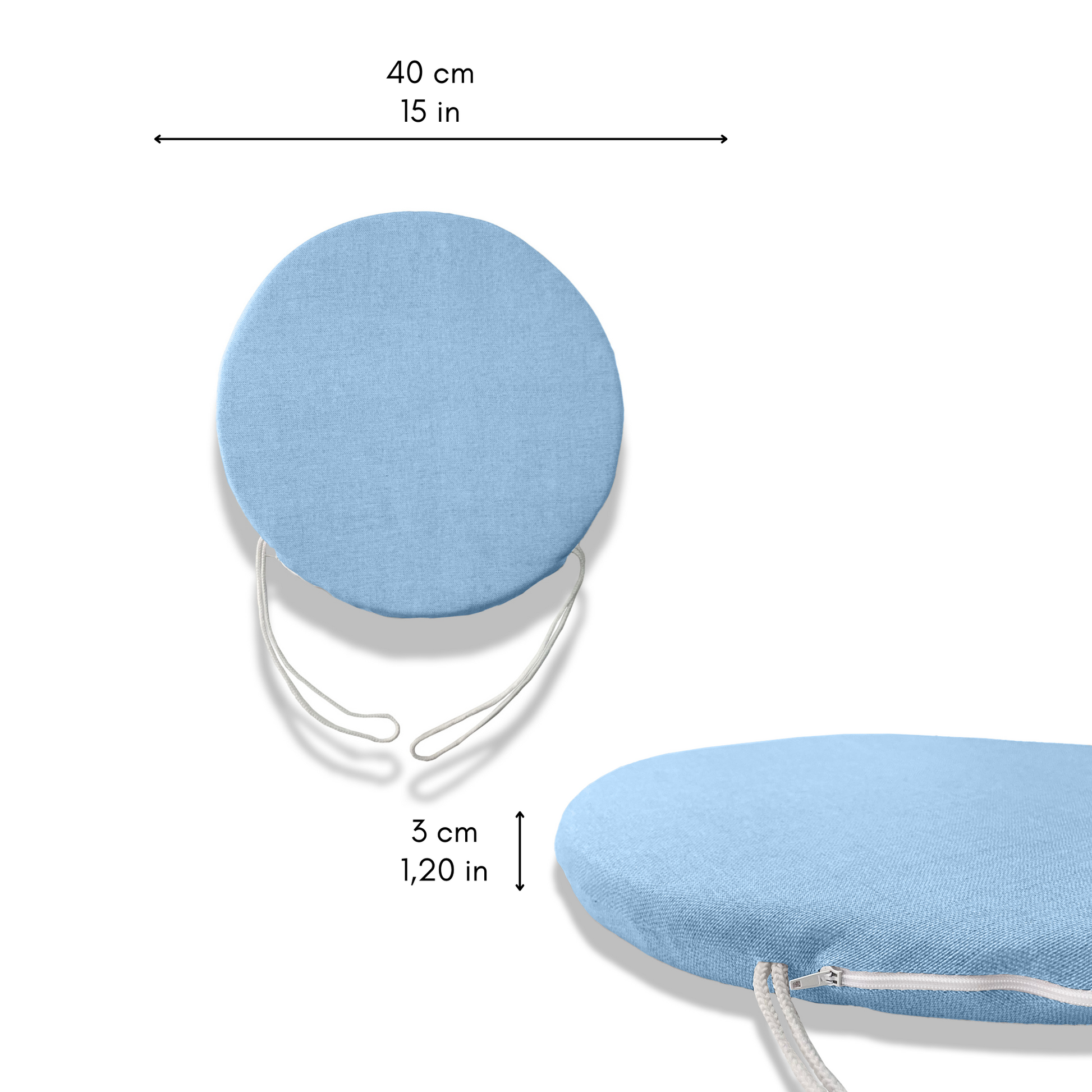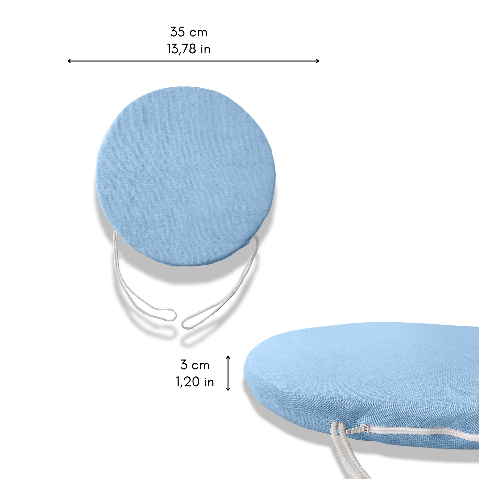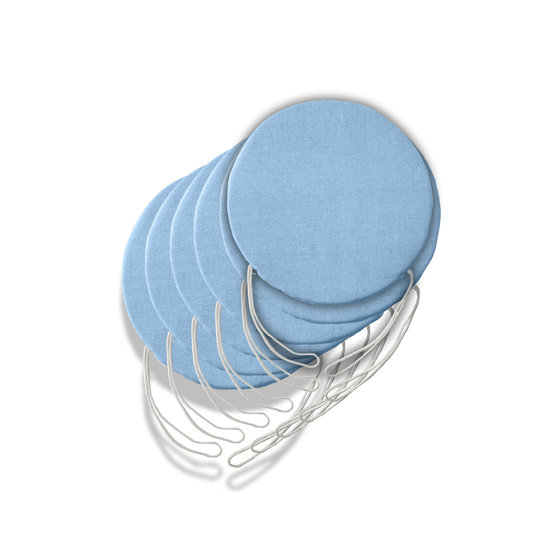 Riceverai 6 cuscini rotondi per sedie rivestiti in tessuto tinta unita 50% cotone e 50% poliestere, disponibili in tante colorazioni diverse.