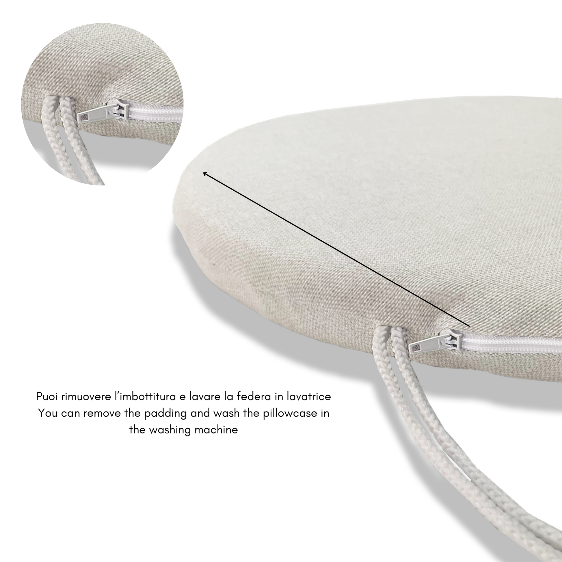 Il nostro cuscino rotondo per sedia è imbottito in soffice e resistente gommapiuma, facilmente rimovibile tramite la cerniera lampo.