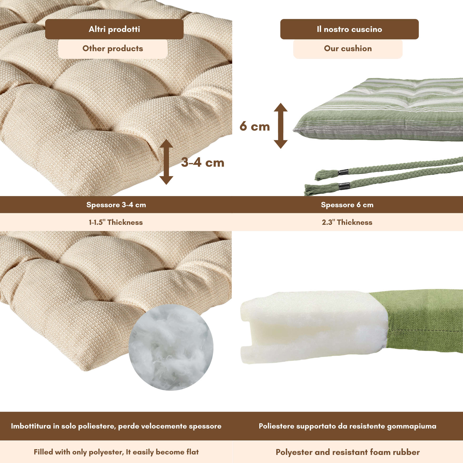 Set da 4 o 6 Cuscini per Sedie da Cucina made in Italy Verde - Linea Cairo