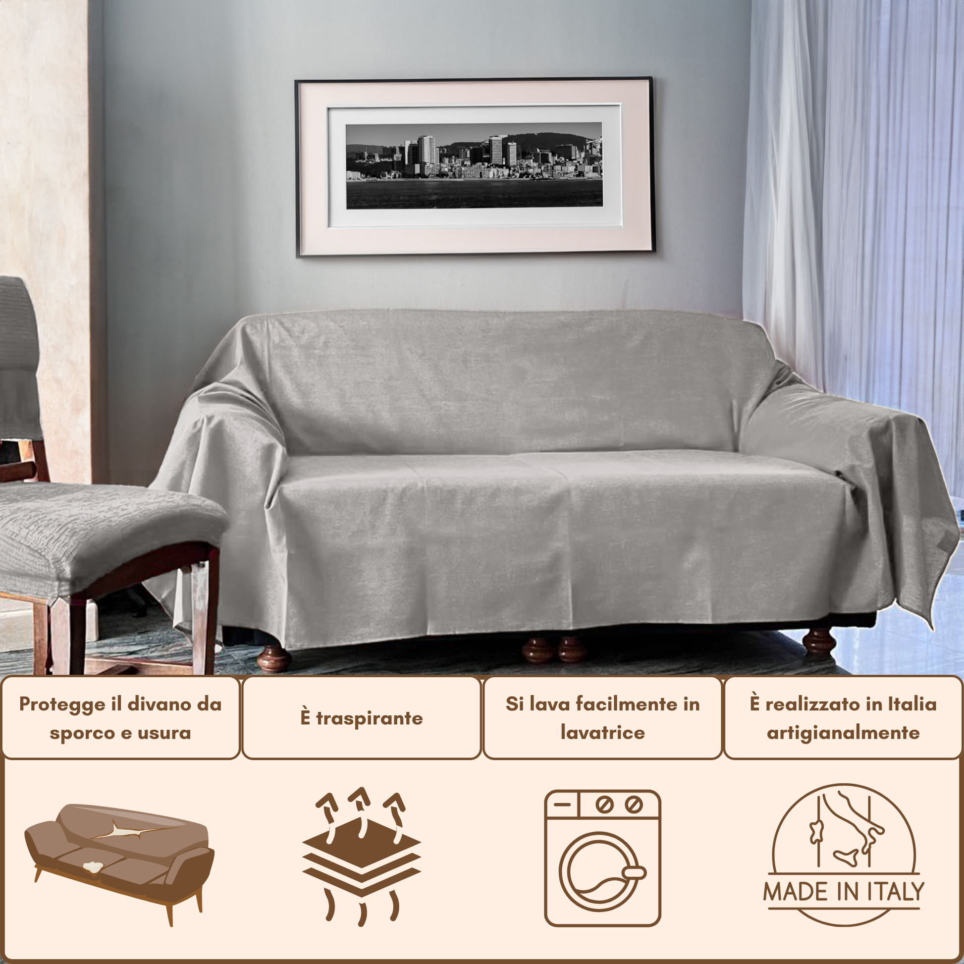 Telo arredo multiuso grigio chiaro - copridivano made in Italy