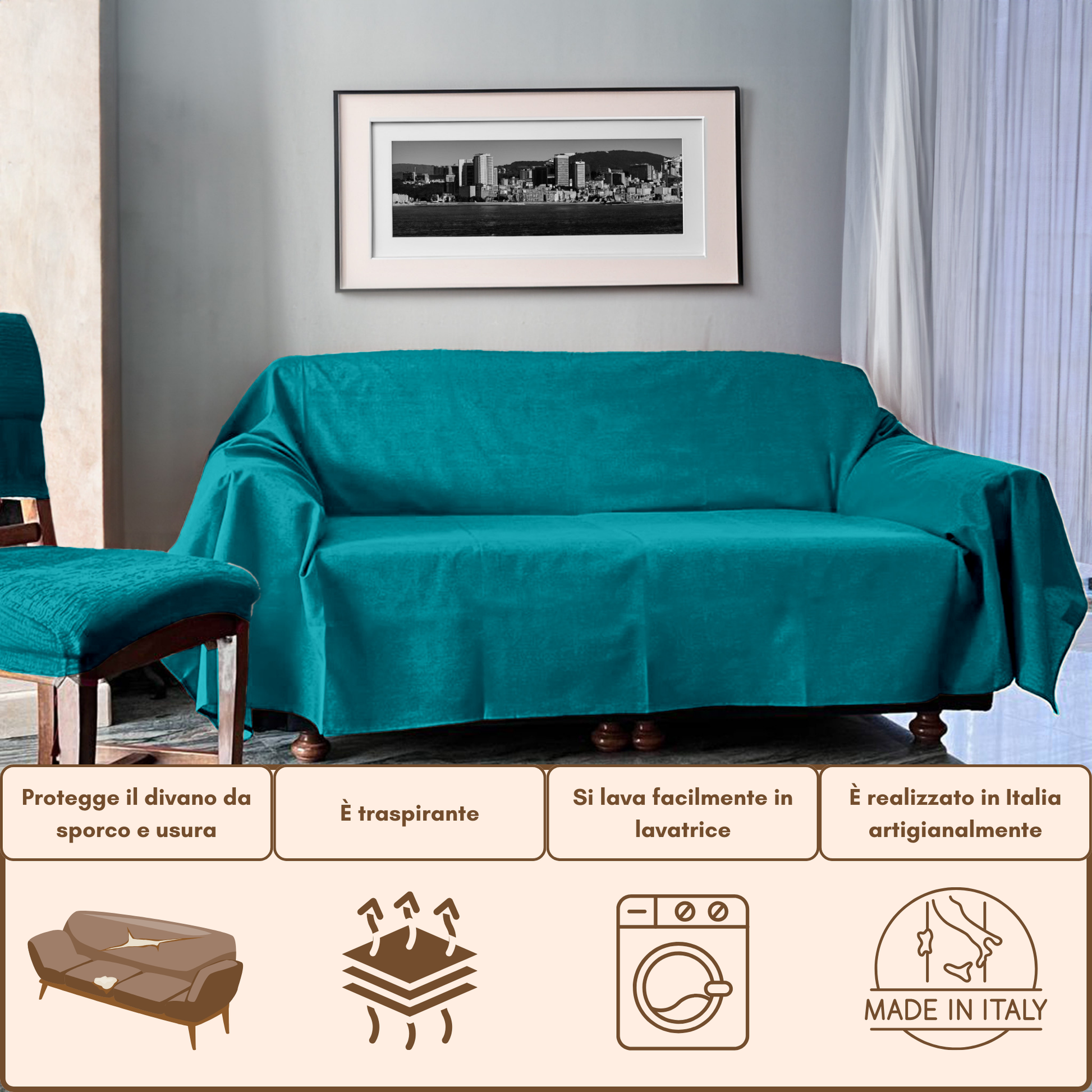 Telo arredo multiuso petrolio - copridivano made in Italy
