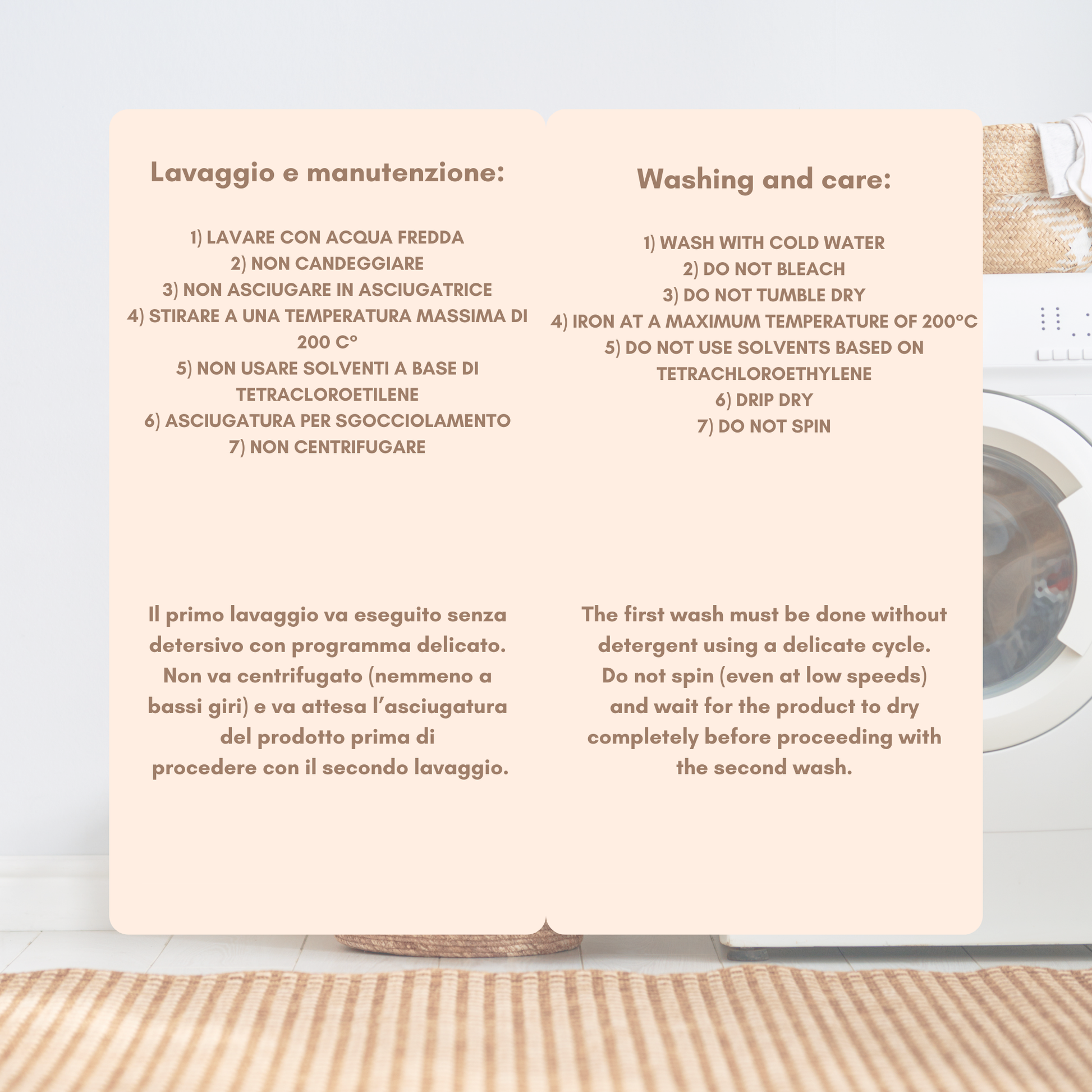 Istruzioni di lavaggio: da lavare in lavatrice ad una temperatura di 30°.