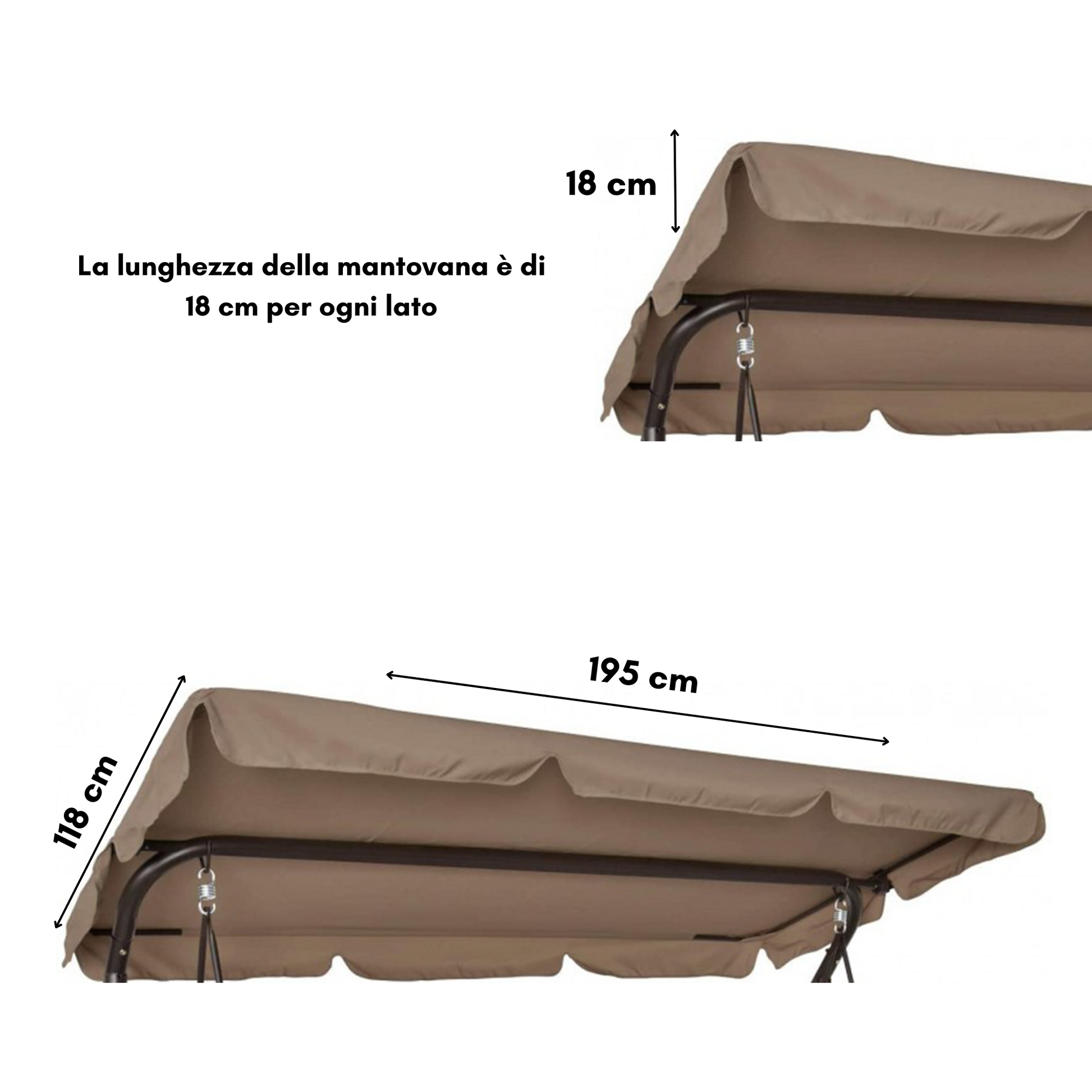 l'accessorio perfetto per ripararti dal sole e poter passare ore in giardino senza beccarti insolazioni o scottature migliorando anche l'aspetto del tuo dondolo, completandolo.