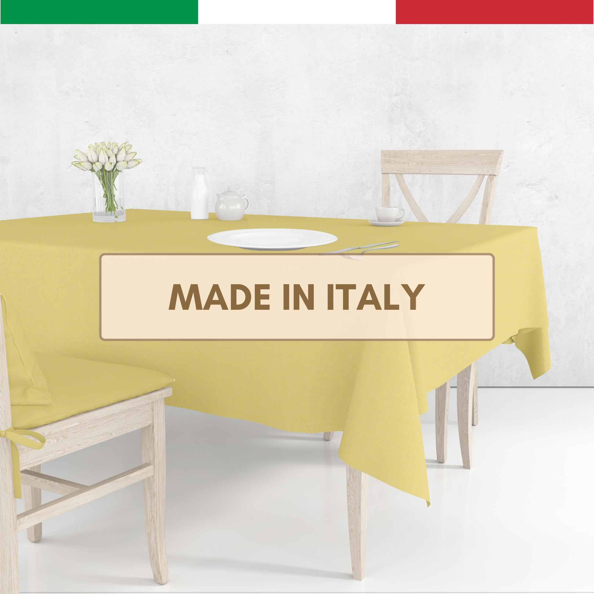 Aggiungi un tocco di stile italiano alla tua tavola da pranzo con questa tovaglia artigianale.